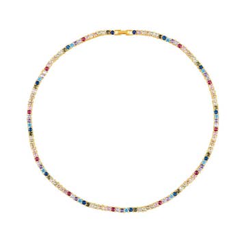 Water Resistant Necklace Vibrant and stylish, this Water Resistant necklace blends multicolor cubic zirconia with chic paperclip links, creating a playful yet sophisticated accessory that stands out. Material: Gold / rhodium plated, triple plated, over stainless steel - water resistant/waterproof Stone: Cubic zirconia Size: Approx. 3mm cz Length: Approx. 16", plus a 2" extension Closure: Lobster clasp Imported.