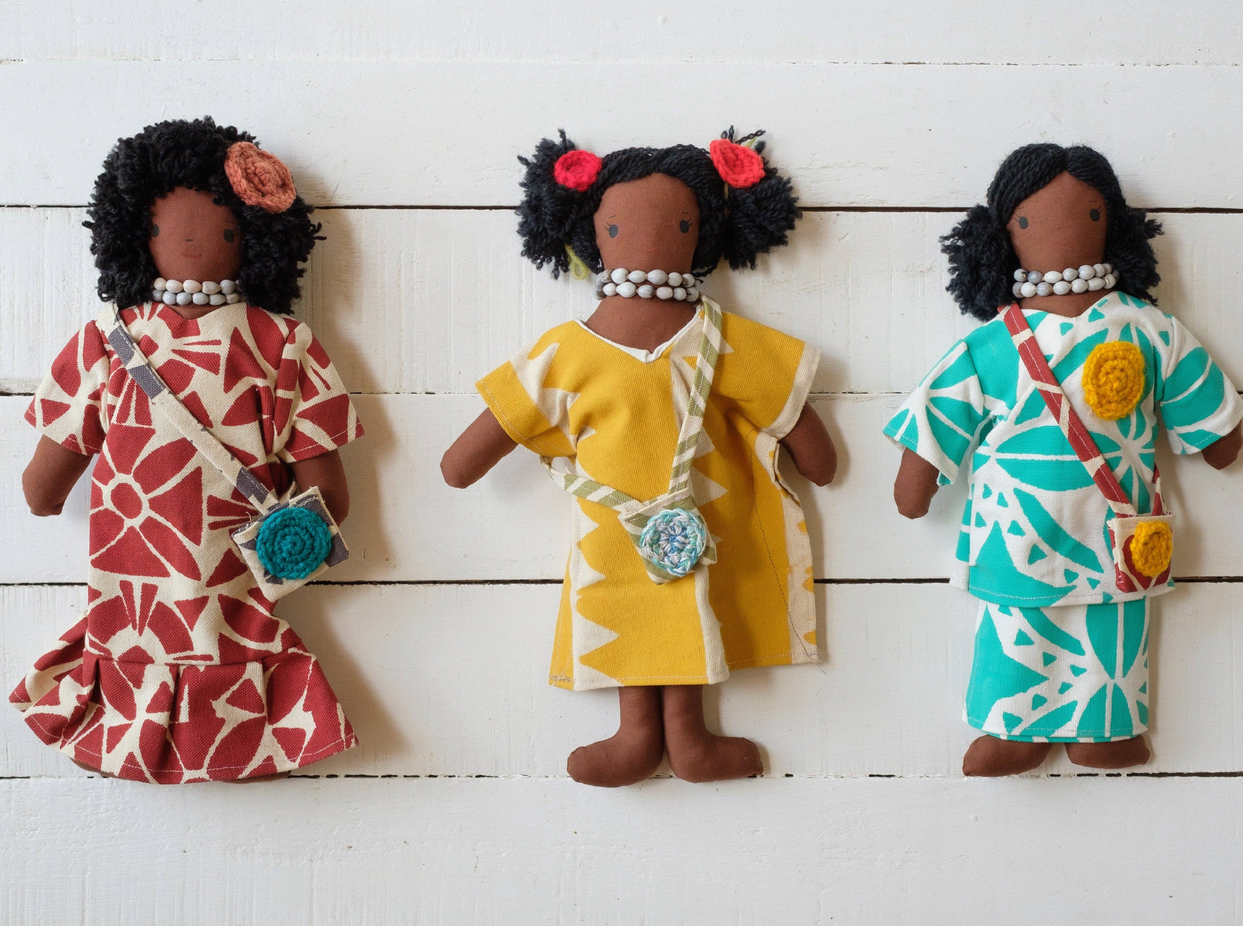 Representation starts in childhood and is embodied in these beautifully-made dolls. These hand-sewn dolls are made by Fijian Maramas (women) in their remote community. This supports Fiji communities while presenting a wonderful toy and tool for teaching children about cultural and racial diversities. Large Doll Approx. 14W x 34H cm, or 5.5W x 13.5H inches. Small Doll Approx. 11W x 19H cm, or 4W x 7.5H inches.