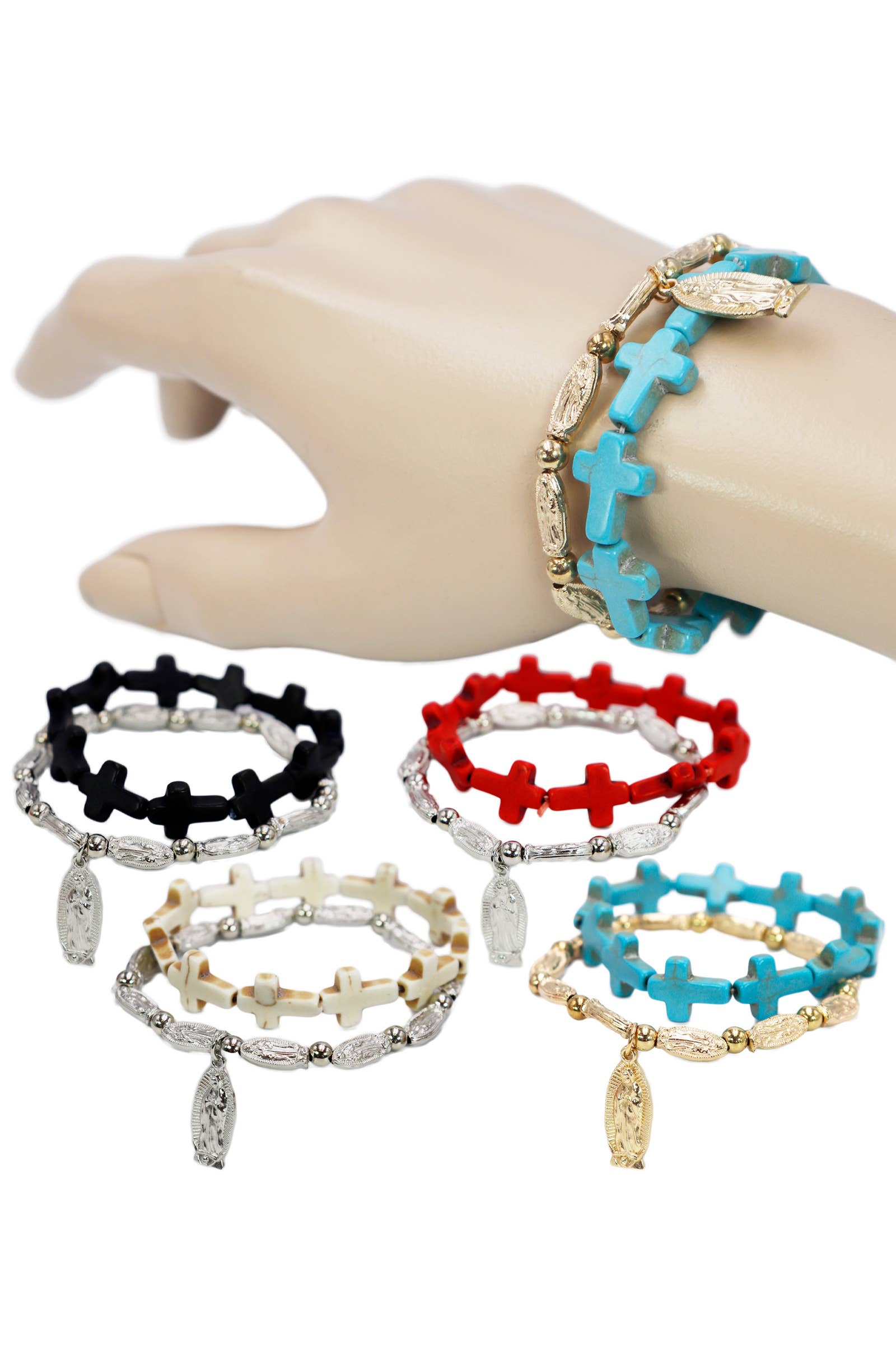 Wholesale Cutout Cross with Chunky Ball Stretch Bracelet