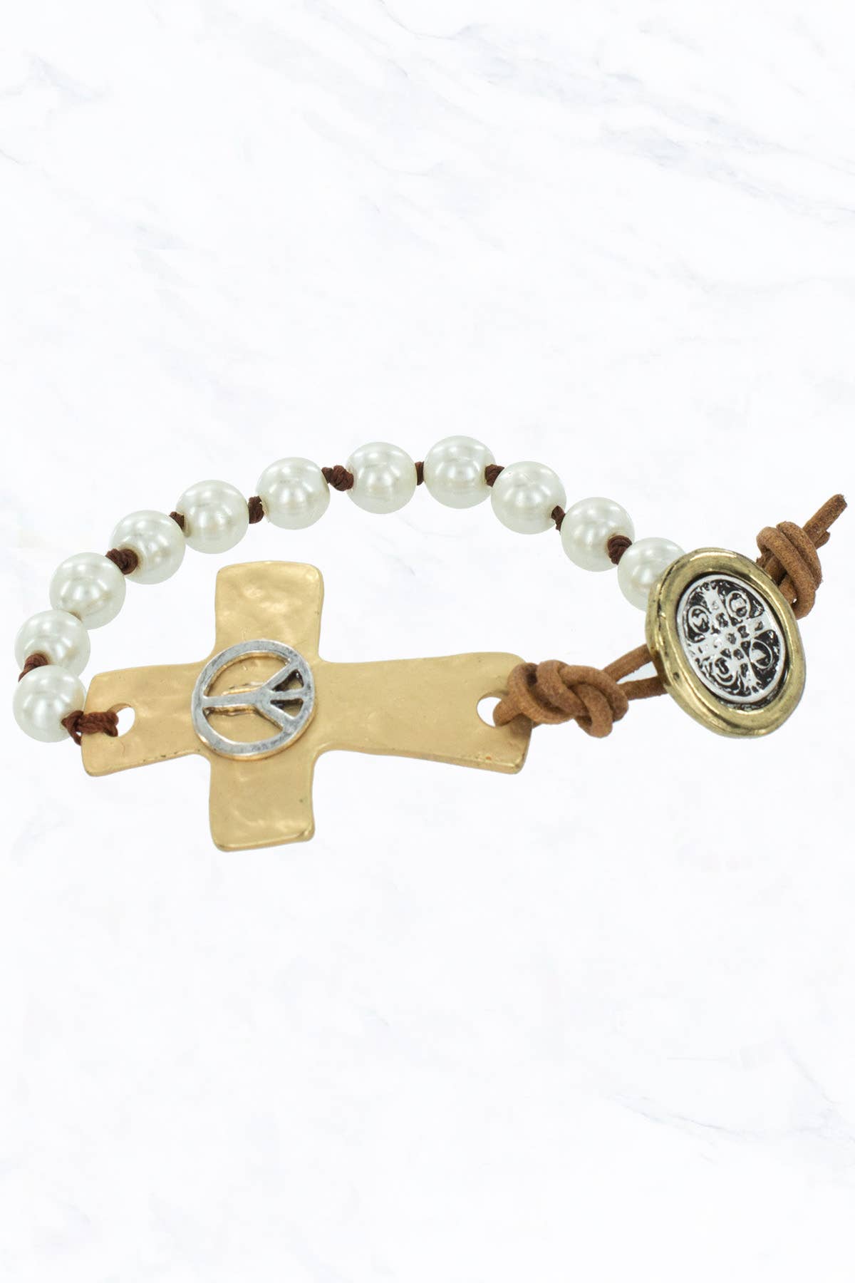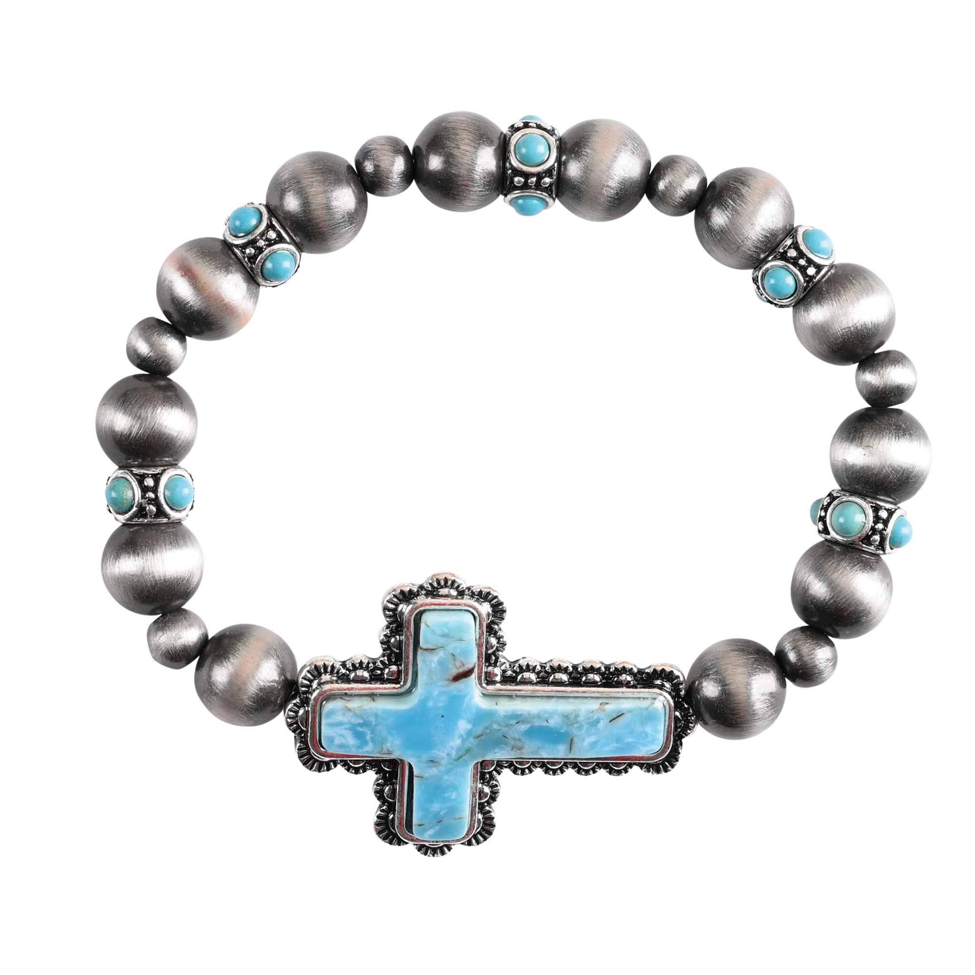 Cutout Cross with Chunky Ball Stretch Bracelet