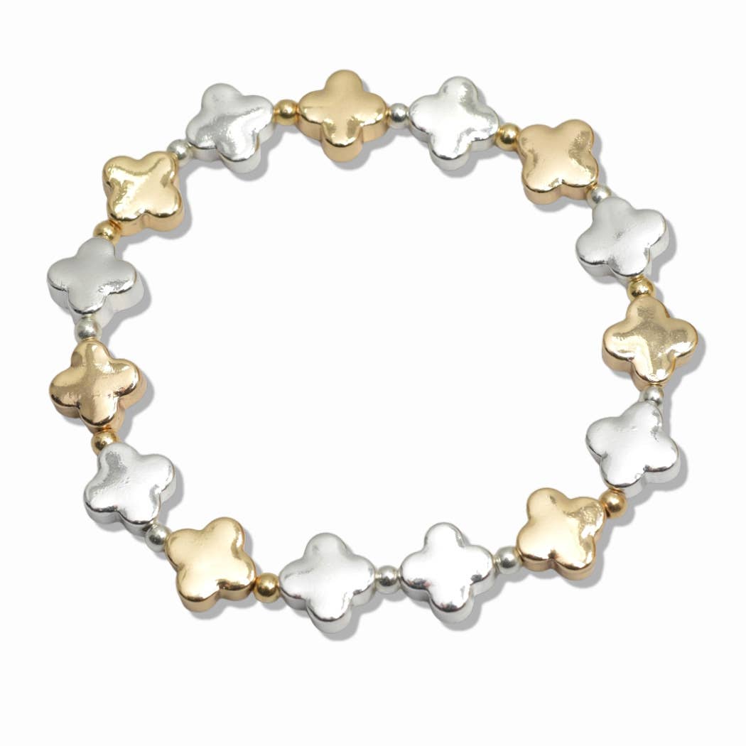 Color : Worn Silver,Worn Gold, Worn Silver + Worn Gold Size : 1"H, Stretchable, Brass Cutout Cross with Chunky Ball Beaded Stretch Bracelet Available By WORN GOLD : 11/29/2024 WORN GOLD + WORN SILVER : 11/29/2024 WORN SILVER : 11/29/2024