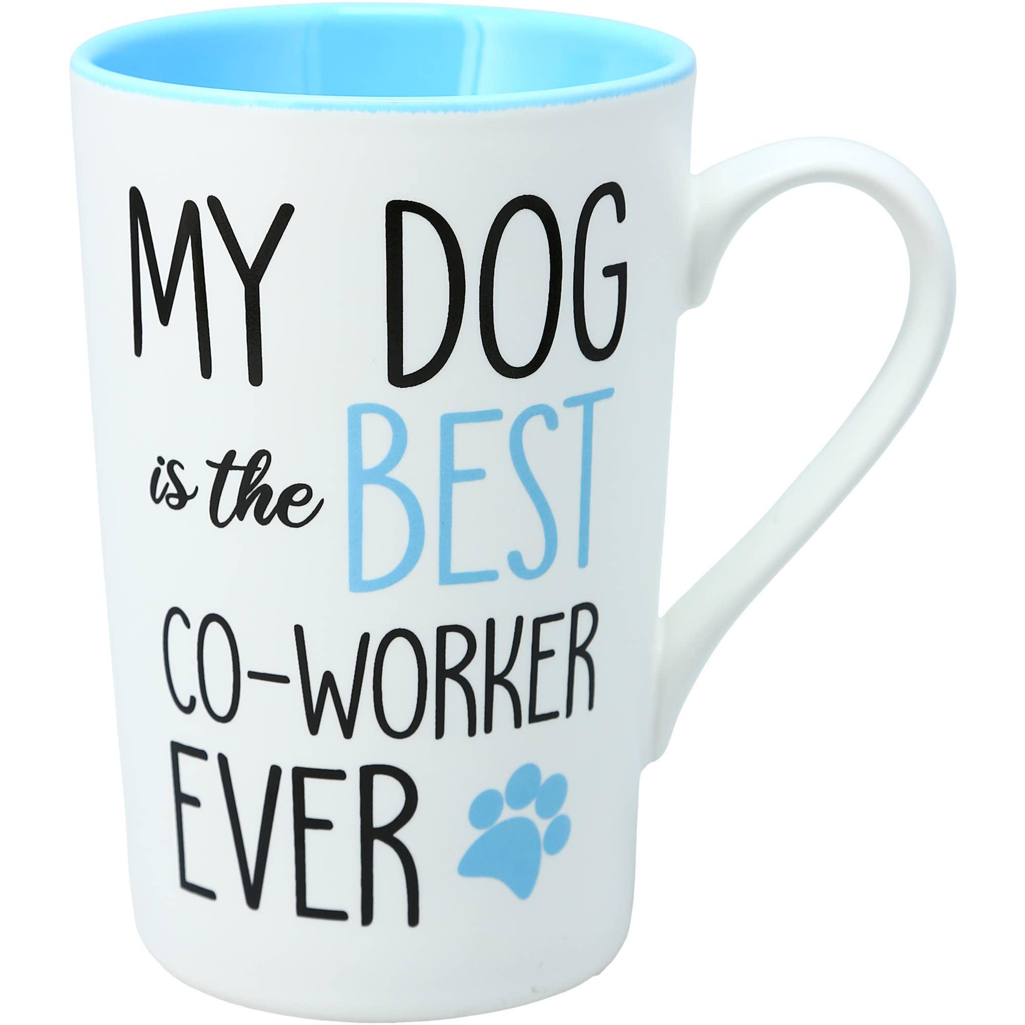 Front reads My Dog Thinks I'm Cool and the back features a pawprint and heart. This is a handmade ceramic mug created by me in my New Jersey studio. Handmade from stoneware clay, this mug measures 4 x 4 and holds 16 oz. The exterior is white, and the interior is blue. Created with all lead free, non toxic materials- safe to place in the dishwasher and microwave. Great gift for a dog lover. pet owner gifts Pet Lover new my dog thinks I'm cool i love dogs eco friendly dog owner Dog mug dog mom Dog lover Dog Dad Dog