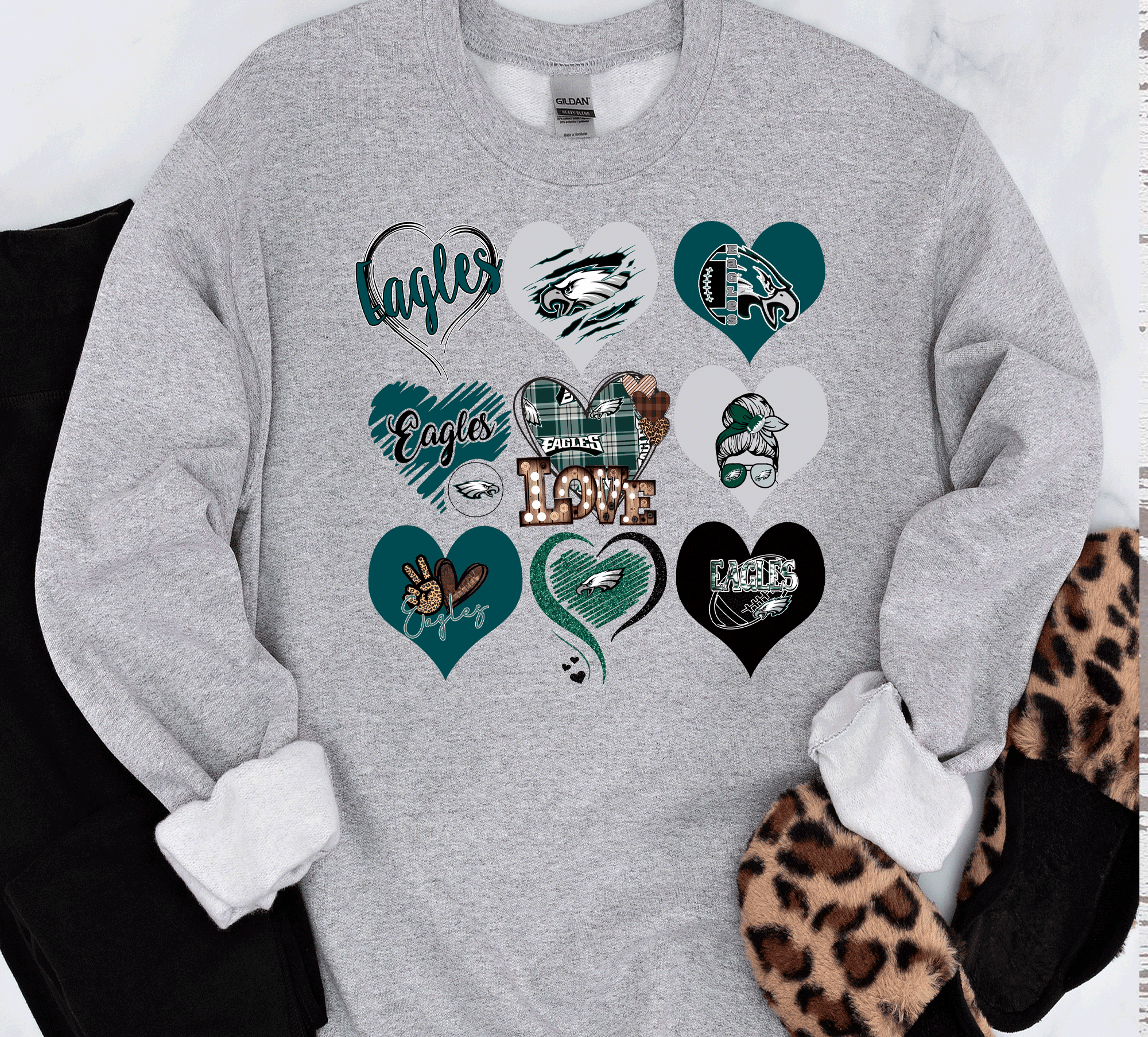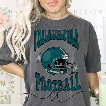 Show off your team spirit in style with our exclusive collection of Philadelphia graphic shirts! Whether you're cheering from the stands or watching from home, our shirts are designed to let you proudly display your love for the Eagles! *** This is NOT lifted glitter*** I am limited in the number of options I can list here. I have included a color chart with all the available shirts, sweatshirts, and hoodies. If there is a color you want that is not in the drop-down box, email me. Please check the color chart under pictures before ordering. The T-shirt option is a Gildan soft-style T-shirt or a comparable one. Comfort Colors Brand is a top-of-the-line preshrunk super soft T-shirt. Our Sweatshirts and Hoodies are Gildan. If we can not get Gildan in the color and sizes you need to fill your order, we will use a comparable.