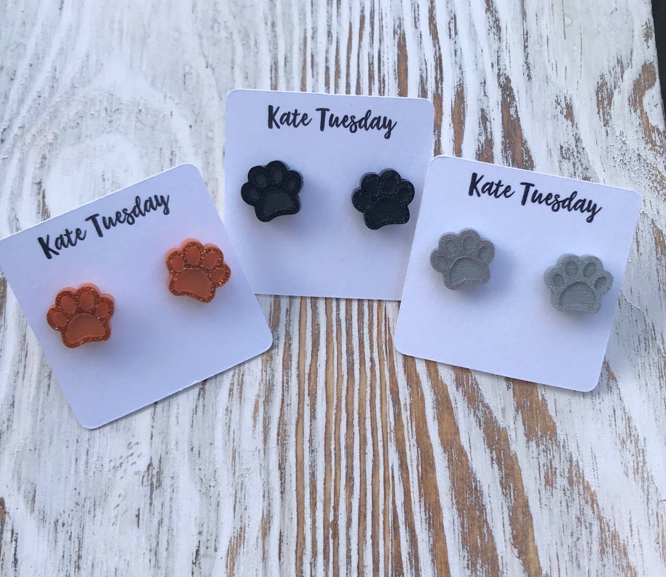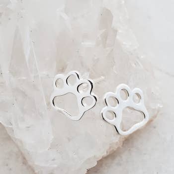 Wooden Dog Paw Stud Earrings