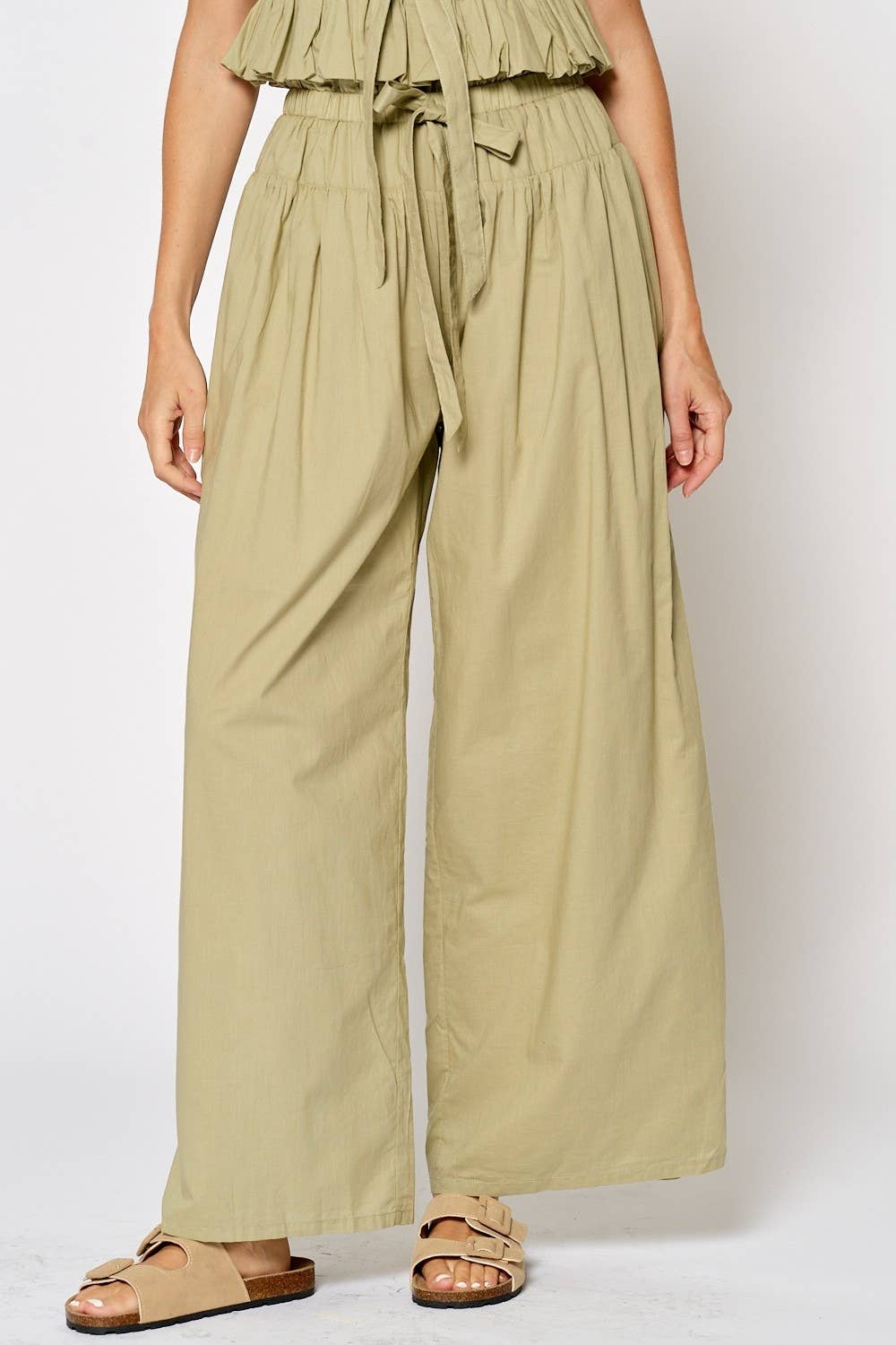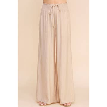 -LINEN BLEND WOVEN FABRIC -PAPER BAG DETAIL WAIST -ELASTIC WAIST BAND -BELT TIE DETAIL -SIDE POCKET -WIDE LEG PLUS SIZE: H70534PL STYLED WITH: H20623, T10011, T10014 MODEL IS 5'9" AND IS WEARING SIZE SMALL