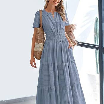 Summer V Neck Short Sleeves Splicing Dress ZK1254 Stylish Design: Elevate your wardrobe with our V Neck Short Sleeves Splicing Dress, featuring a chic splicing design that effortlessly blends sophistication with modern flair. Flattering Fit: Embrace your curves in this figure-flattering dress, crafted to accentuate your silhouette and enhance your confidence. Versatile Wardrobe Staple: From casual outings to special occasions, this dress seamlessly transitions from day to night, ensuring you always look effortlessly stylish. Breathable Comfort: Enjoy all-day comfort with the lightweight and breathable fabric of our dress, perfect for staying cool and chic in any season. Effortless Elegance: Make a statement with minimal effort in our V Neck Short Sleeves Splicing Dress, designed to exude timeless elegance and charm wherever you go. Size Chart (cm) Size Bust Length Sleeve S 95.0 92.0 21.5 M 100.0 94.0 22.0 L 105.0 96.0 22.5 XL 110.0 98.0 23.0 2XL 115.0 100.0 23.5
