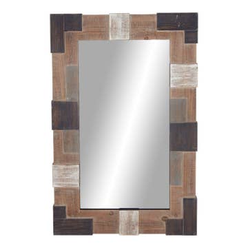 Marlon Wood Rectangular Industrial Wall Mirror Item Dimensions: 34"H x 1.5"W x 21"D Wood wall mirror. Industrial design. Hangs using nails or screws (not included).