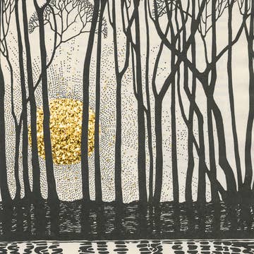 Letterpress printed. Deckle edged paper. Includes matching envelope. Available sleeved or unsleeved. This atmospheric letterpress design features a majestic oak draped in Spanish moss, silhouetted against a gradient twilight sky in blues and warm yellows. The romantic, Southern-inspired imagery appeals to customers drawn to evocative landscapes with regional character. The letterpress technique beautifully captures the flowing lines of the moss and the dramatic sky transitions. Produced on premium heavyweight paper with hand-finished deckle edge, this un-greeted card offers retailers a distinctive option that stands apart from typical nature designs.