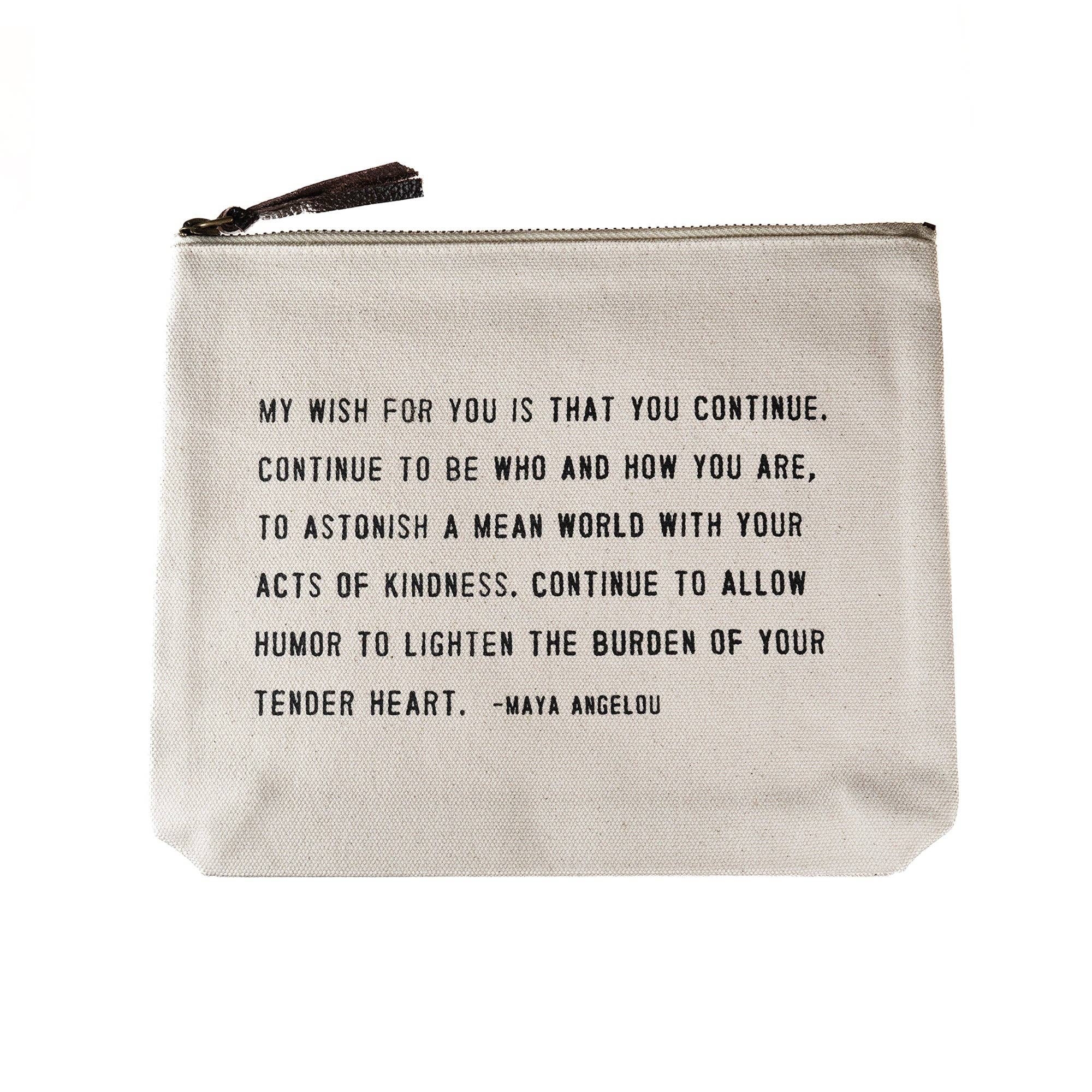 The Sugarboo & Co Small Zip Pouches are perfect for organizing small items in your daily life. The durable fabric is held with a leather zipper tab and decorated with inspirational quotes for your organizing needs. Keep everything in your purse or bag organized with these canvas zippered pouches so you never lose anything again. Whether you plan to use these bags for travel organization or as a canvas makeup bag, we know you’ll find the perfect pouch and quote for you. A note from the artist: These canvas cuties are the ultimate for your bag of tricks! Perfect for makeup, pencils, accessories, and happy things. Pro-tip: it’s the perfect low-maintenance gift wrap for a gift or for bridal and party favors. Details: Quote: You've always had the power, my dear, you just had to learn it for yourself. - The Wizard of Oz Canvas pouches Zipper closure 9" x 7"