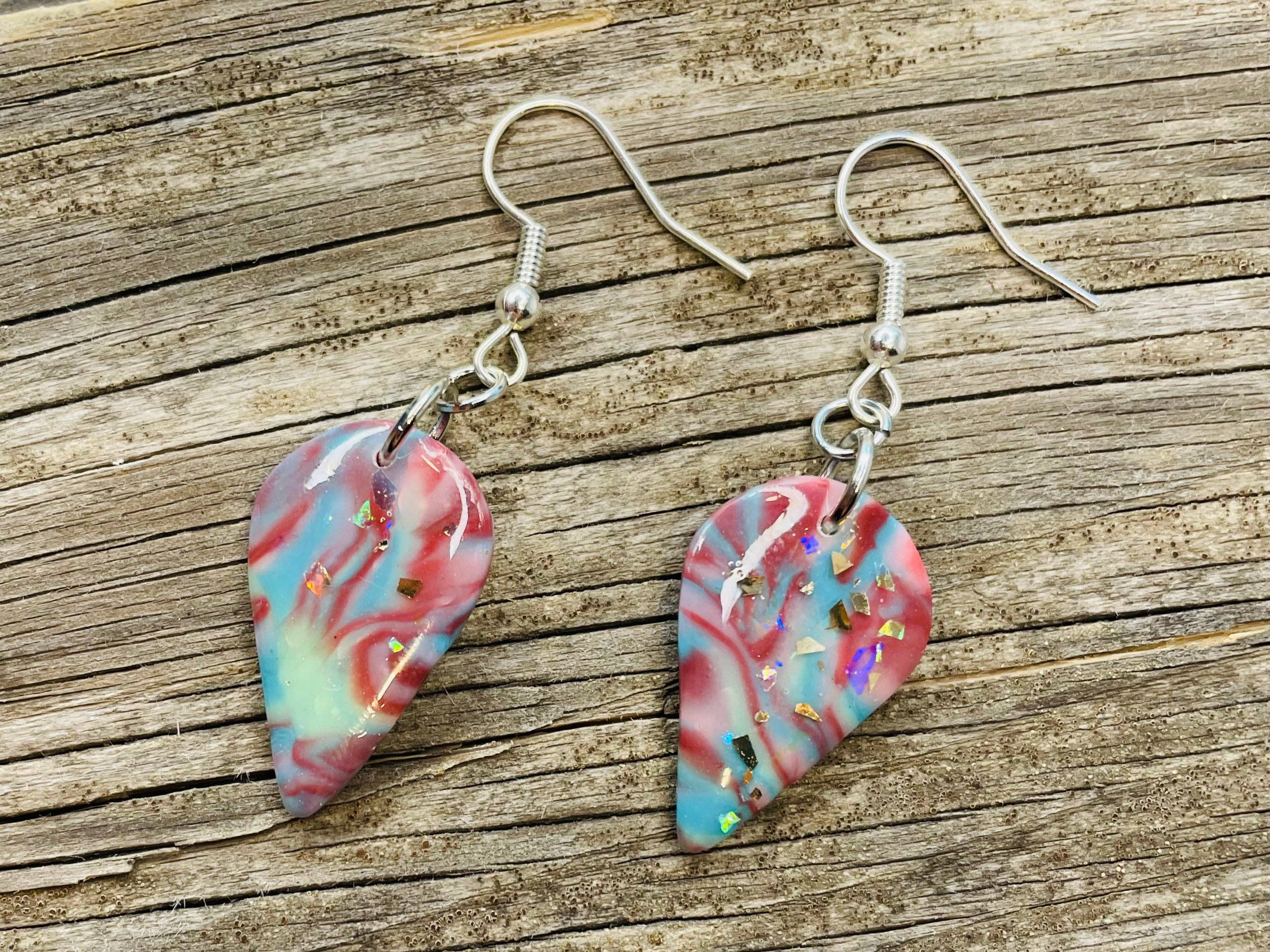-Vibrant colors to create statement pieces for music lovers. -Painted on black heavy Fender Guitar Picks - Fender logo is visible on the back of the earrings. -Coated with Duplicate-color Engine Enamel to ensure extreme durability -Nickel-free hooks