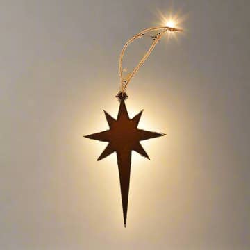 A beautiful geometric star, a symbol of light and hope! The ornament measures 2 3/4" x 4 1/2" x 1/8" thickness - made from baltic birch plywood. This ornament is small and lightweight, so it makes a perfect gift tag, or addition to a bottle of wine you'll be gifting over the holidays!