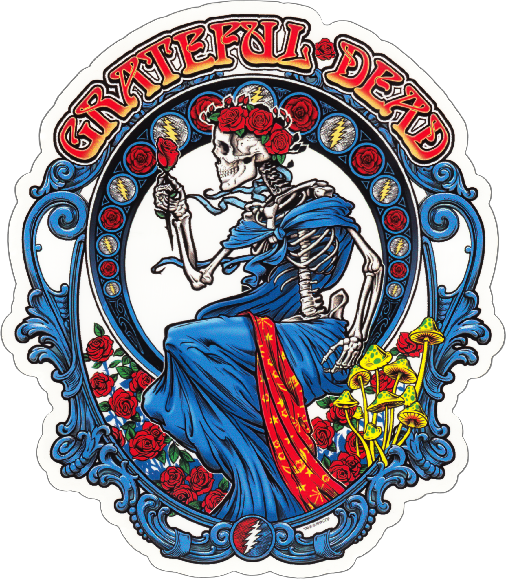 Celebrate the Grateful Dead's iconic imagery with the Grateful Dead Bertha Roses Sticker. This sticker features the beloved Bertha skeleton surrounded by a vibrant bouquet of roses. It's a symbol of the band's music, art, and the free-spirited counterculture of the era. Stick it on your laptop, water bottle, or anywhere you want to add a dose of psychedelic and rock 'n' roll vibes. Let the music play on and the roses bloom in your heart! 🌹🎶🌈✌️ Grateful Dead Skull & Roses On Tie Dye 3.6"x5" Sticker