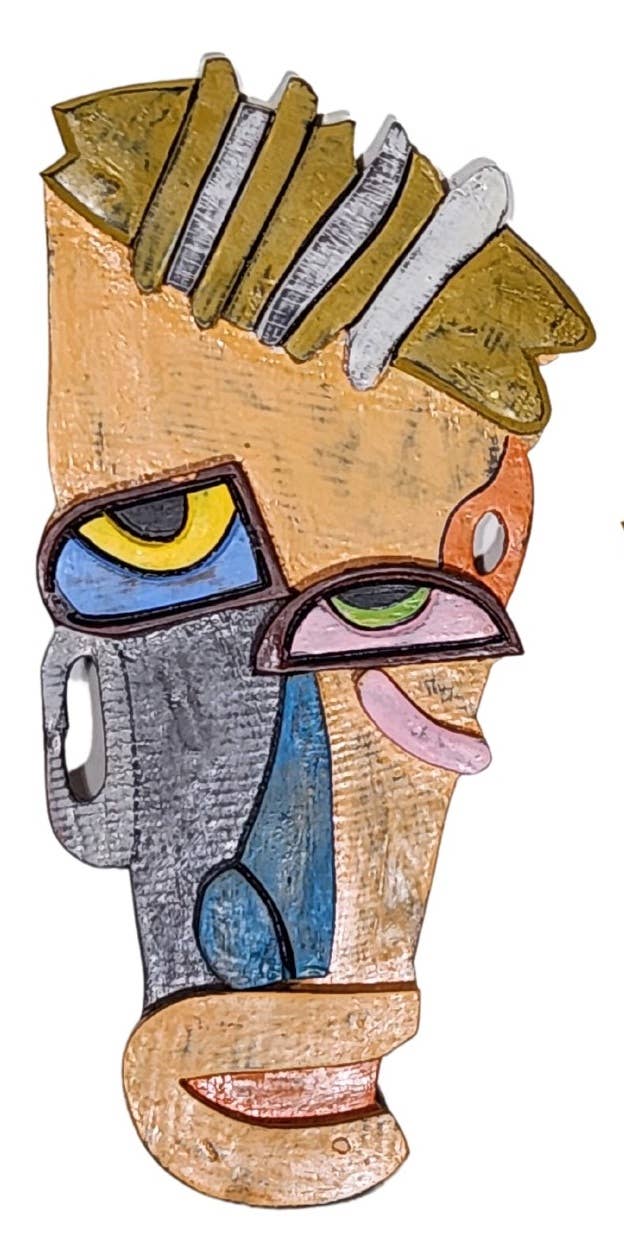NOTE: Each mask is crafted by hand, size and color variations may vary by piece. Add a fun and colorful touch of tropical style to your indoor or outdoor decor with this set of five double tiki totem masks featuring different designs: a turtle, parrot, hibiscus, and two geometric shapes. They are made of sustainable wood, and hand carved to give them that fun tiki look. Each is painted with a brown base coat to make the colors and the face come to life. This set is perfect for bars, BBQ pits, the patio or any island themed oasis, and includes a built-in loop hanger on the back. Hang these approximately 5.75 inch long, 2.25 inch wide, 39.5 inch masks anywhere indoors or outdoors.
