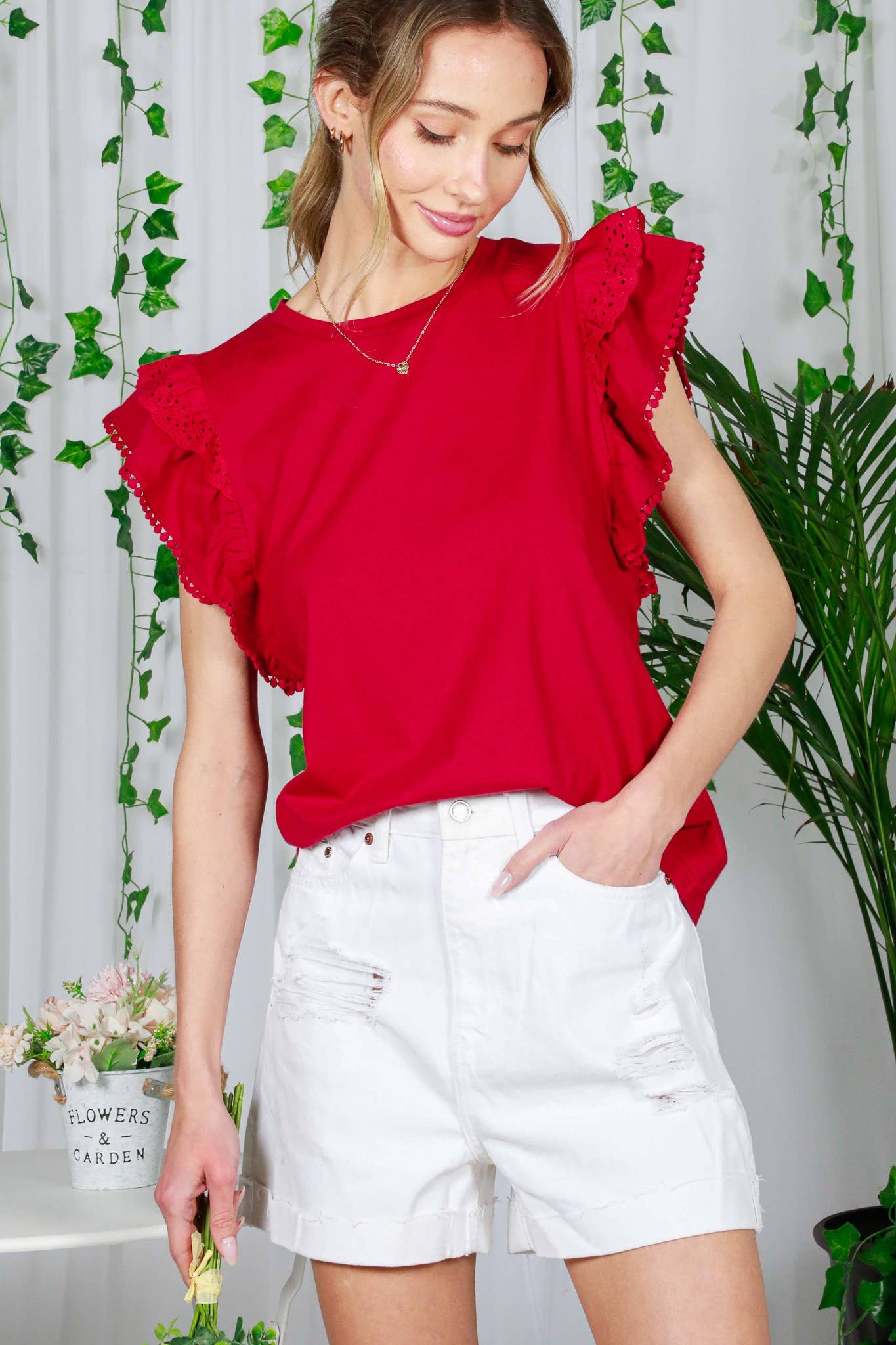Short Puff Sleeve with Lace Woven Top