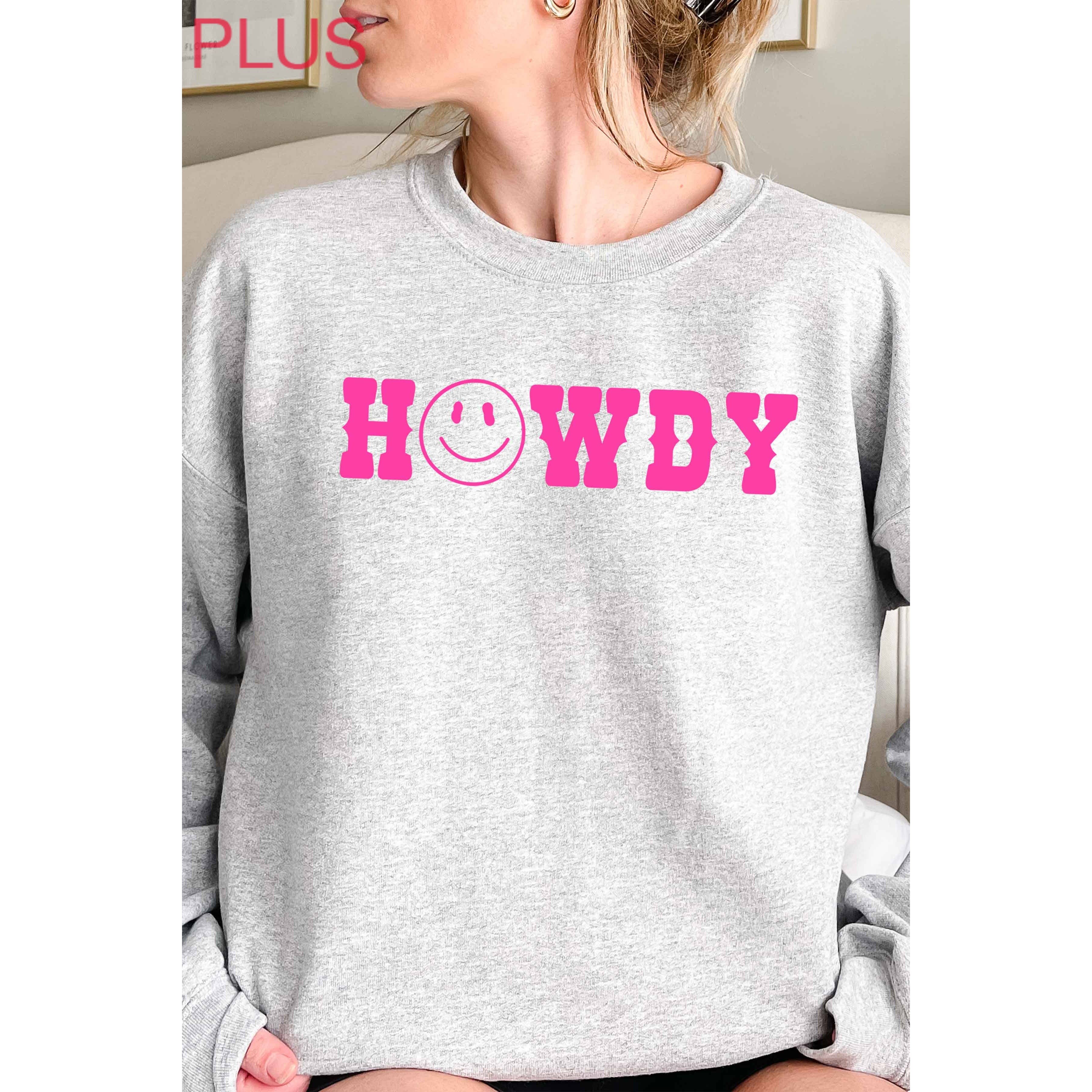 Step into comfort with Branded Cotton's Howdy Sweatshirt. This ash grey sweatshirt is designed with a neon pink puff detail, adding a pop of color to your casual ensemble. As part of our women's graphic sweatshirt collection, it exemplifies our commitment to creating casually cute and always comfortable apparel. Our mother, daughter, and daughter-in-law trio ensure each piece is done just right, from design to packaging, offering a personal touch to your wardrobe. Experience the premium cotton blend and feel the difference in comfort with our Howdy Sweatshirt.