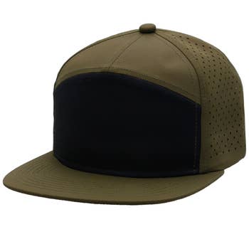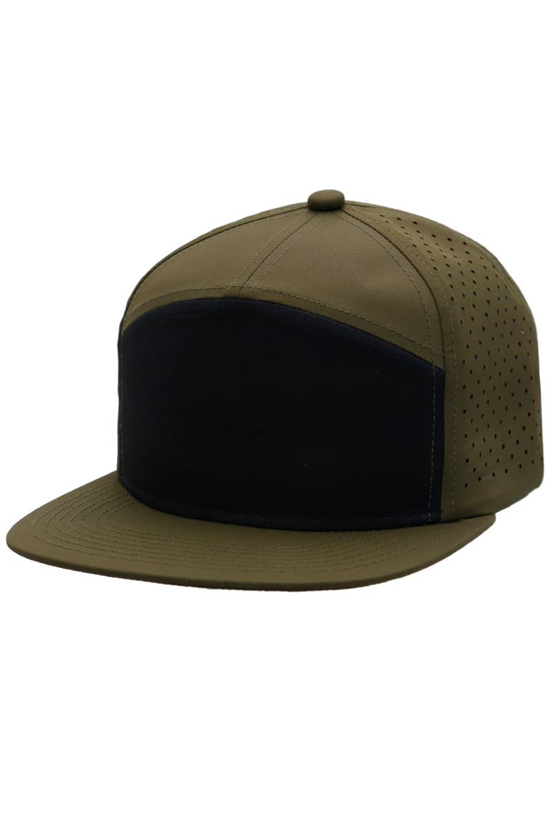 100% Cotton Structured Firm Front Panel 5 Panel Cap Pro Stitch on Crown 4 Sewn Eyelets on Side Panels 8 Rows Stitching on Visor Matching Fabric Undervisor Plastic Snap Closure OSFM - Adult (6 1/2 - 7 5/8)