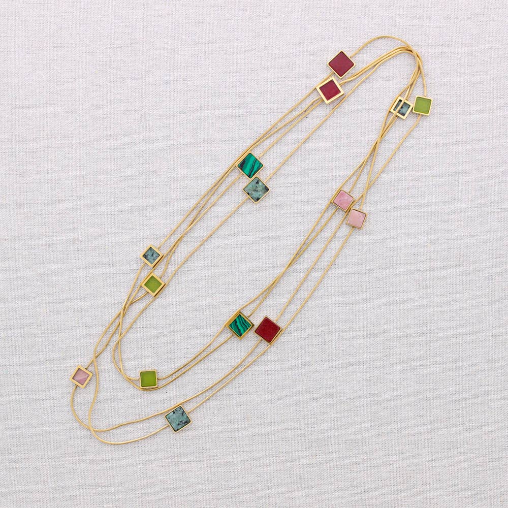 Long Steel Medallized Stone Necklace