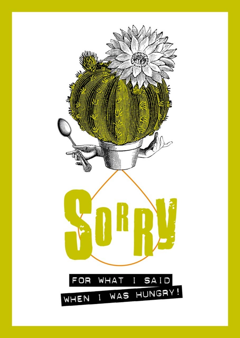 I Messed Up card (blank interior) in Putty with Black scribble illustration and text. Printed on 350gsm, textured, bright white, matte card stock. Natural-colored envelope is made entirely from agricultural waste. Size A6, 105 x 148mm, 4.1 x 5.8 in. Printed in the Netherlands.