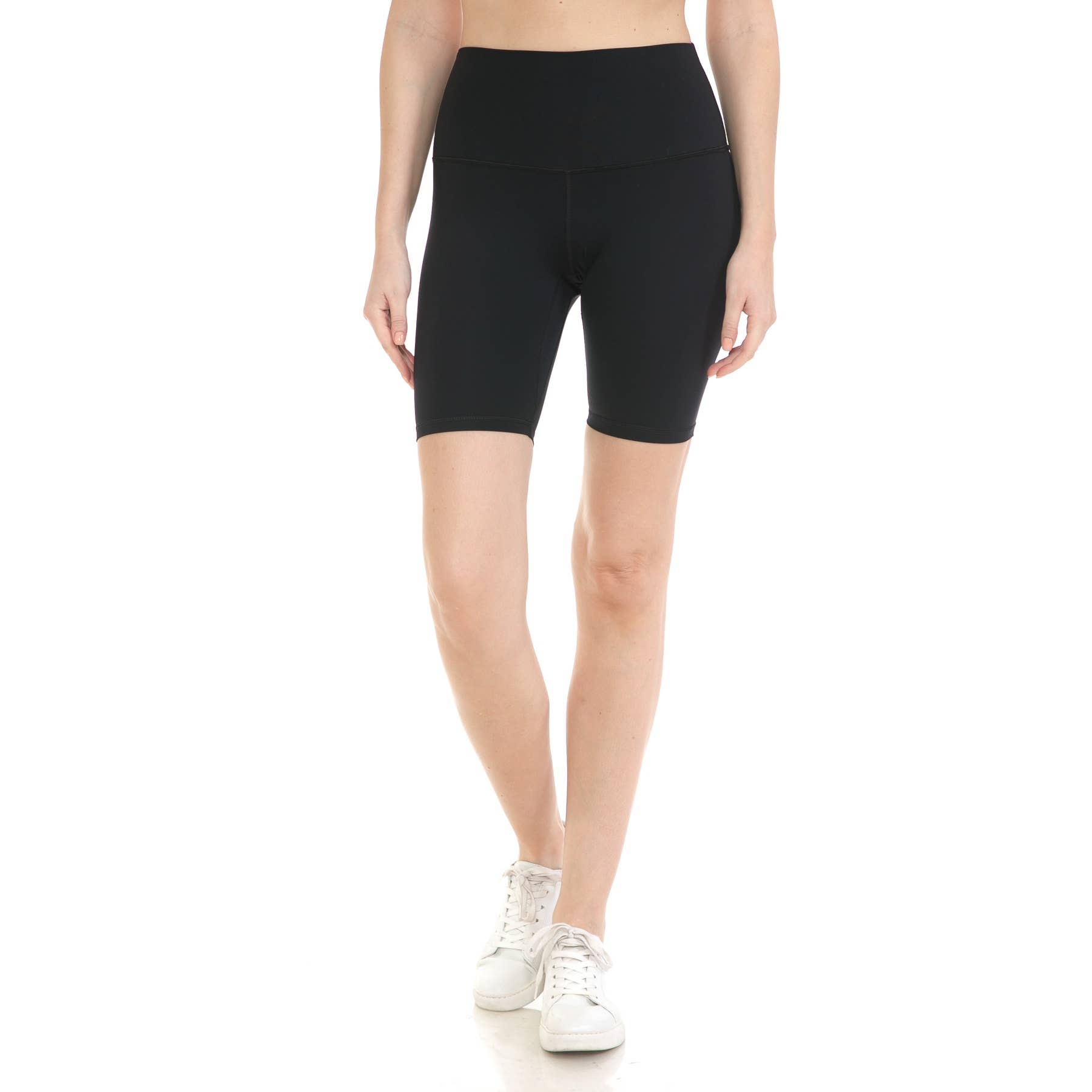 These high-waisted bike shorts feature a stylish cross-front waistband and a body-contouring fit for active comfort. Made with a stretchy polyester-spandex blend, they are perfect for workouts or casual summer wear. Features: • 76% Polyester, 24% Spandex • S-L: 2-2-2 • Cross-front high-waisted design • Stretchy and breathable fabric • Body-contouring fit for movement • Made in Vietnam Model's wearing size small and her height is 5'8"