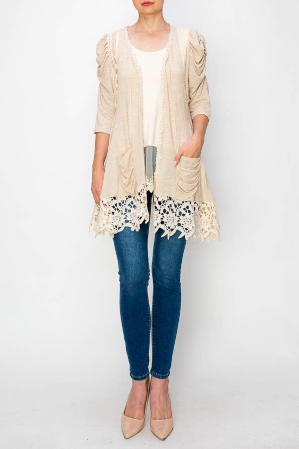 VEST WITH POCKETS AND CHUNKY LACE TRIMMING-4557 BEIGE