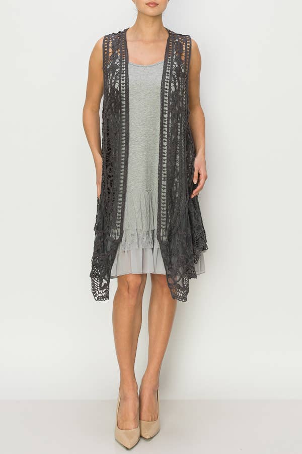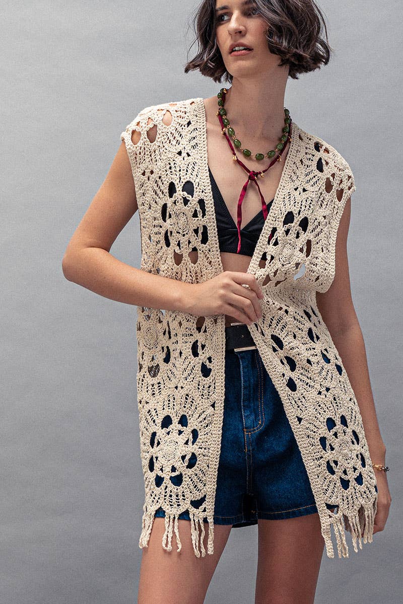 Embrace your sophisticated style with origami apparel's ols-4557 bg, a women's outerwear vest. This vest comes with delicate lace trimmings and convenient pockets, adding a touch of elegance to your wardrobe. Inspired by the beauty of lace and crochet, this vest exemplifies our commitment to crafting stylish and classic pieces. It's an excellent choice for those who appreciate a blend of functionality and fashion.
