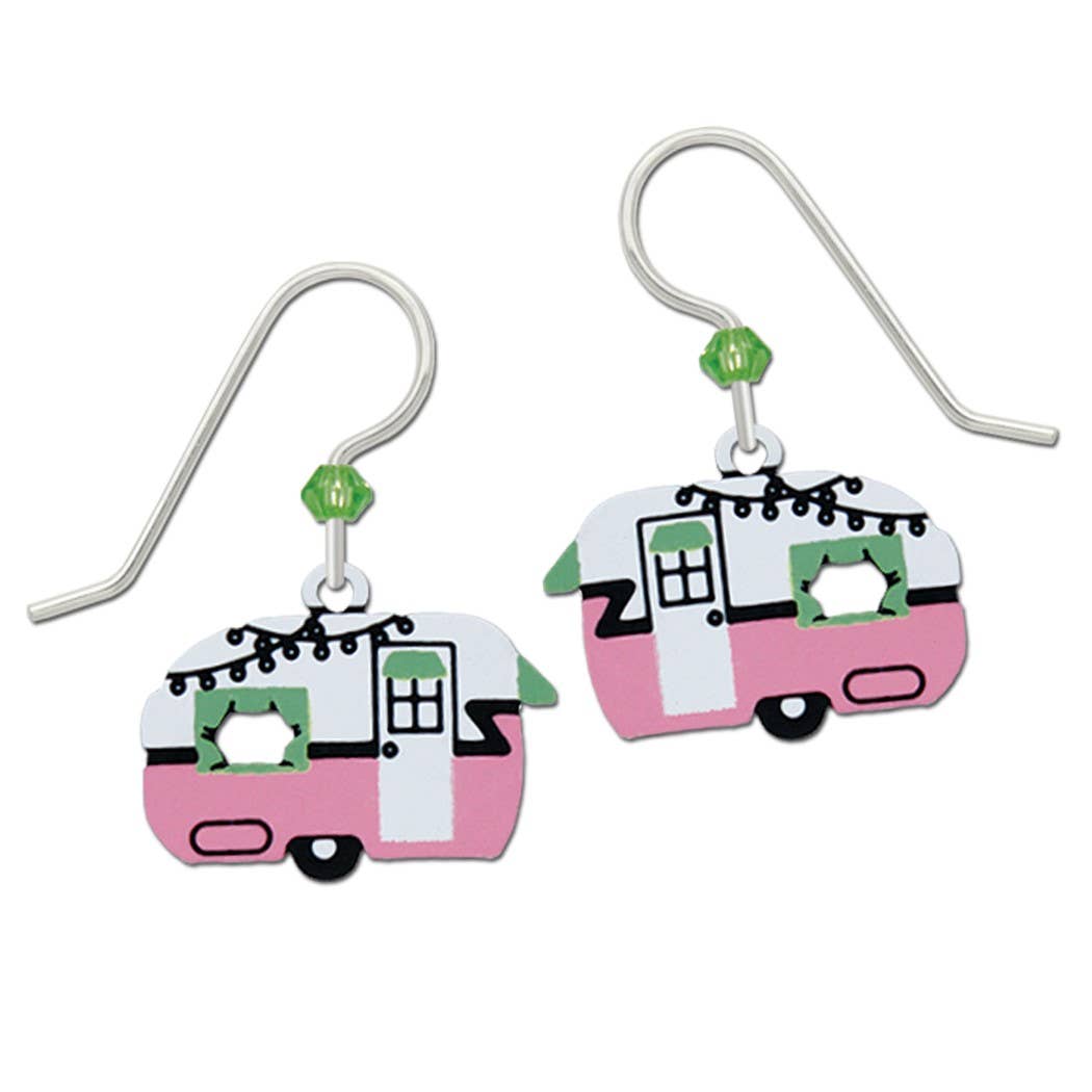 Wholesale Pink Retro Campers Earrings, Camping Trailers
