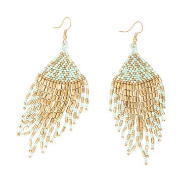 Beaded Fringe Earrings - Seascape