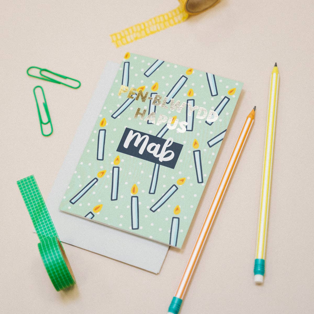 Celebrate a special birthday with this card featuring silver foil detail. 'Happy birthday' text finished with silver foil Blank inside for your own message Supplied with matching envelope Card size: 144mm x 144mm Material: 245gsm card produced from FSC certified forestry Designed and printed in Wales