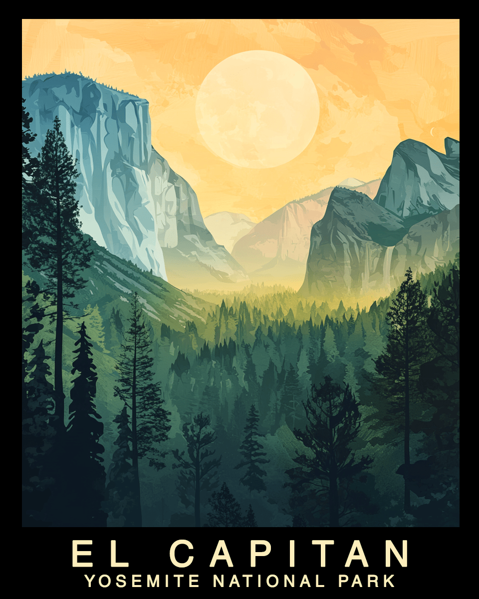 Stained Glass - Yosemite El Capitan Souvenir Home Decor Wall Art Prints Mowbi’s park theme home decor wall art prints you can meditate to include an acid-free matte with a sturdy cardboard backing and are enclosed in a clear protective sleeve, making them retail-ready. These unique poster gifts are powerful souvenir impulse buys driving consistent sales. Customers will always find something special to take home. Features: – 8″ x 10″ High Quality Print – 11″ x 14″ Acid Free Matte – Cardboard Backing Board – Retail Ready Protective Sleeve This piece focuses on activities, landscapes, and vintage posters from the Grand Canyon National Park in Arizona to Acadia in Maine. The artwork in this collection includes minimalist, vintage, nouveau, folk art, and retro park posters.