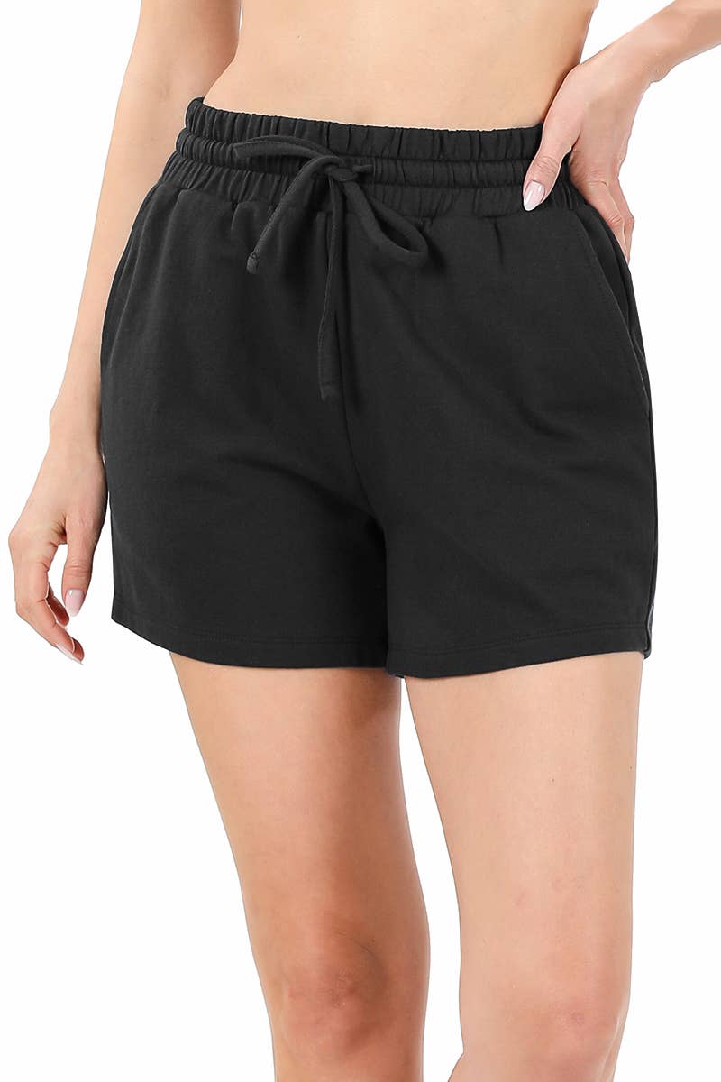 WOMEN ELASTIC WAIST BLACK SHORTS_CWBSP0128