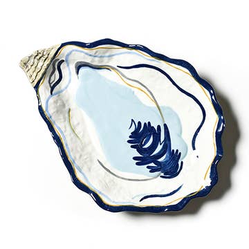 This oyster platter is a beautifully crafted earthenware piece, perfect for serving seafood or appetizers with a coastal touch. Made from high-quality earthenware, the platter features a smooth, glossy white surface adorned with a detailed design of multiple oysters at its center. The intricate artwork captures the natural textures and beauty of the oysters, bringing a subtle marine-inspired elegance to your table. Its oval shape and gently raised rim offer both functionality and style, making it ideal for showcasing a variety of dishes. Durable and easy to clean, this earthenware platter is an excellent choice for beachside gatherings, seafood feasts, or adding a nautical theme to any dining occasion. All SHARD designs are originals and designed in the United States. All earthenware pieces are handmade either using a custom decal or hand painted. Our products are made small batch and may have some variation to each piece, adding to its uniqueness.
