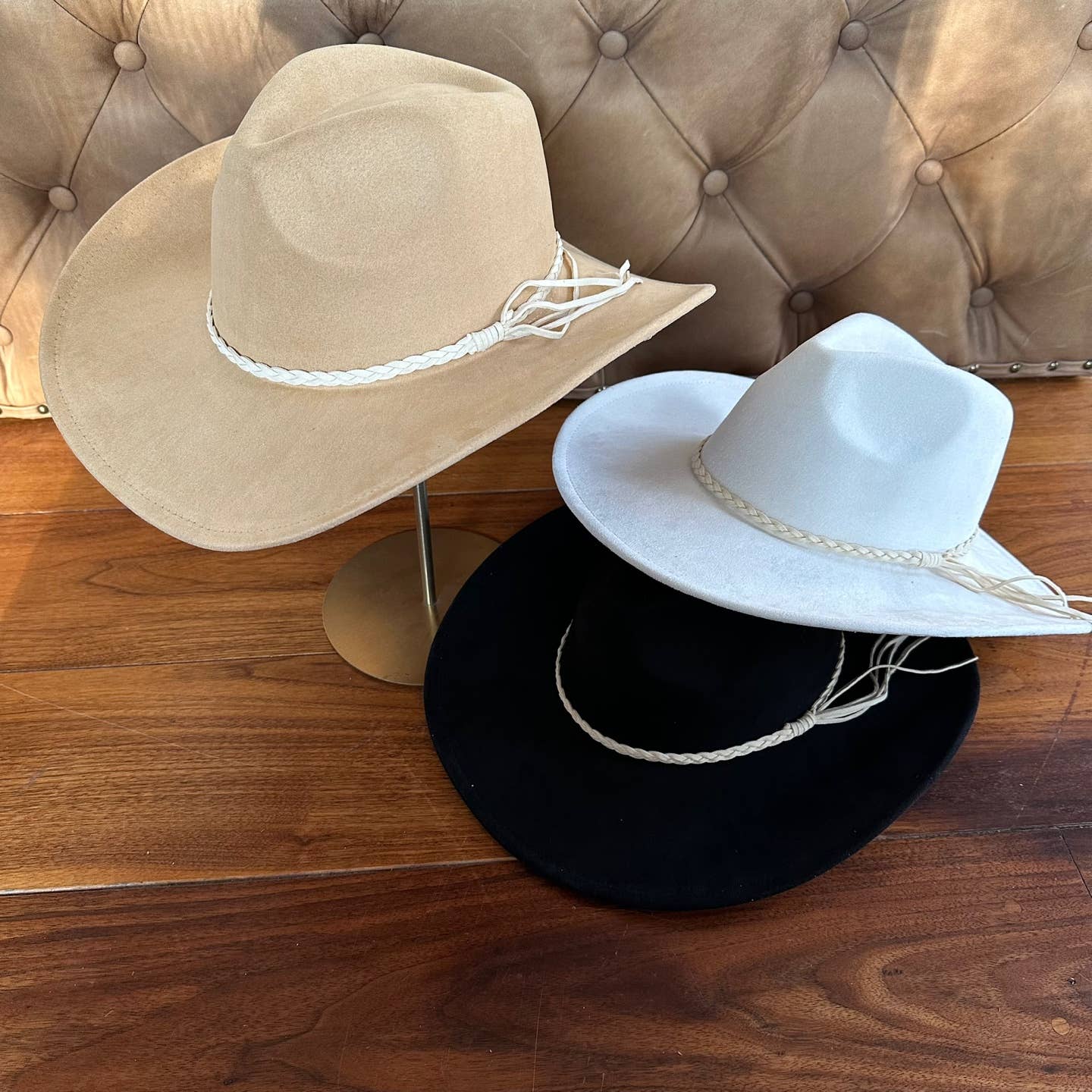Vegan suede cattleman cowboy hat stiff flat brim Stylish hat
