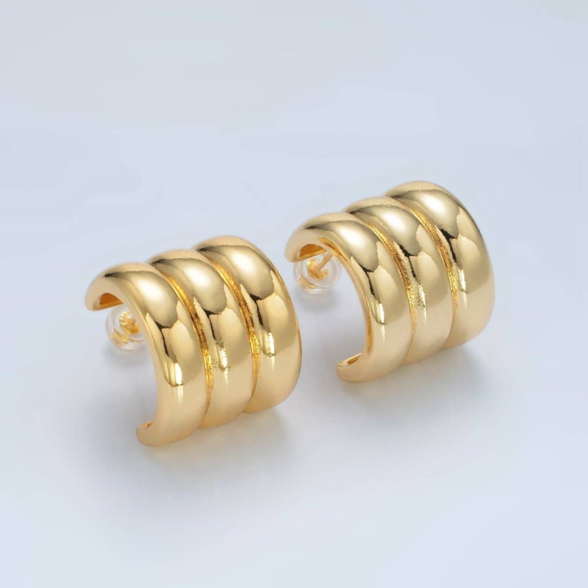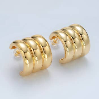 Wide double hoop earring that gives the illusion of two hoop earrings. -Triple-plated -Hypoallergenic