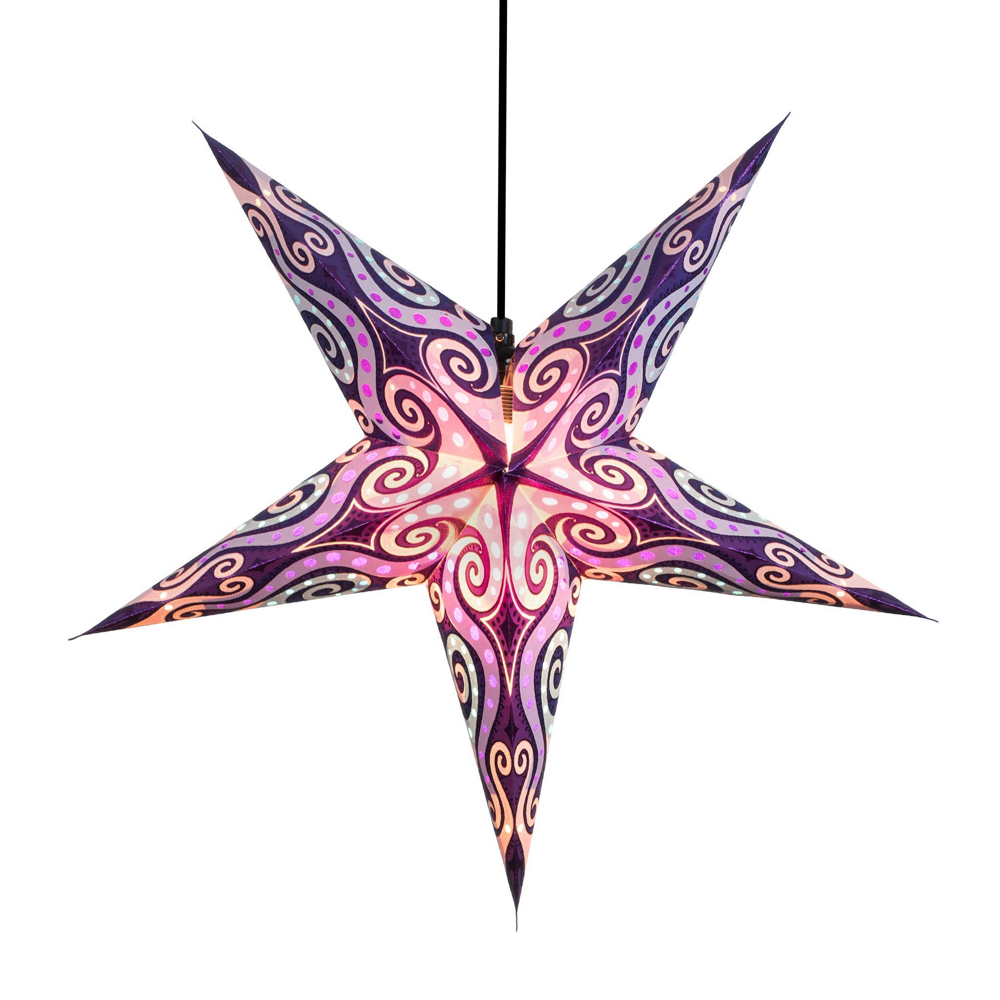 blue / green with pink/blue tissue inlay 5 Pointer, Ø 24-inch depth, 10-inch The whirling and changing symmetric pattern of the Kaleidoscope is ever tantalizing. What Makes Artschatz Star Lights Unique: Each star is handmade in India and assembled right here in New York. We carefully check every one for quality. Unlike most paper stars, Artschatz Stars hang symmetrically with the tip pointing upward—reflecting the traditional symbol of protection and luck. The pre-installed clear cable exits through the top point for proper orientation and fast setup, you will find that others hang awkwardly from a side seam. Each star features a slim cable, energy-efficient LED bulb, 5V USB AC adapter, and a unique magnetic closure system for easy, secure assembly.