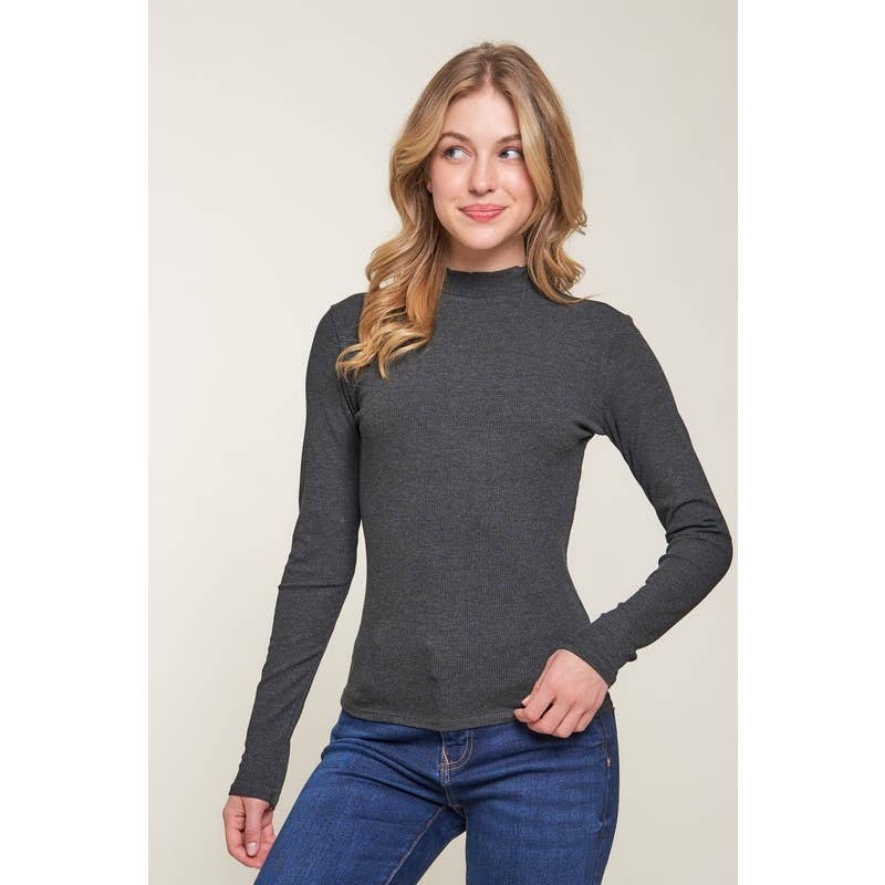 Fleece Lined Crew Neck Long Sleeve Top - Slim Fit - Full Length - Crew Neck - Long Sleeve - Soft and Stetchy Fleece Lined - 90% Polyester 10% Spandex - Imported. Designed in USA. ** Size & Fit *********** Model is wearing size M Measurements taken from size M Height - 5' 7 1/2" / 175.3CM 32B-25W-36H