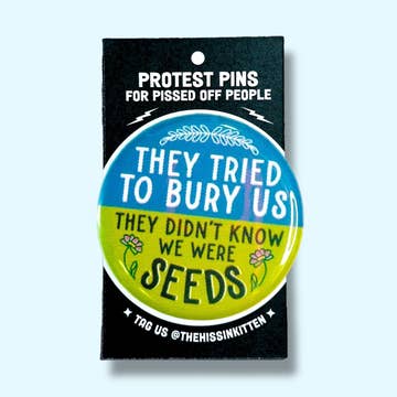 “Make Earth Sacred Again” Not your average button pin! Designed by us, all of our pins are manufactured locally by a woman-owned business in a solar-powered, geothermal factory (see below). On top of that, while we all love the classic glossy buttons, these feel extra special with a super soft velvet matte finish. We are proud to get our buttons made by a business with a green manufacturing process: ~ printed on recycled and sustainably reforested FSC (Forest Stewardship Council) certified papers ~ made with local recycled steel ~ made in a solar-powered century-old factory renovated with eco-friendly insulation, geothermal heating and cooling, and reclaimed building materials ~ made with materials from nearly all local suppliers "Freethinker Paper Co." appears along the rim of each button. Pins are sent without packaging, to be displayed in bowls or as you wish.