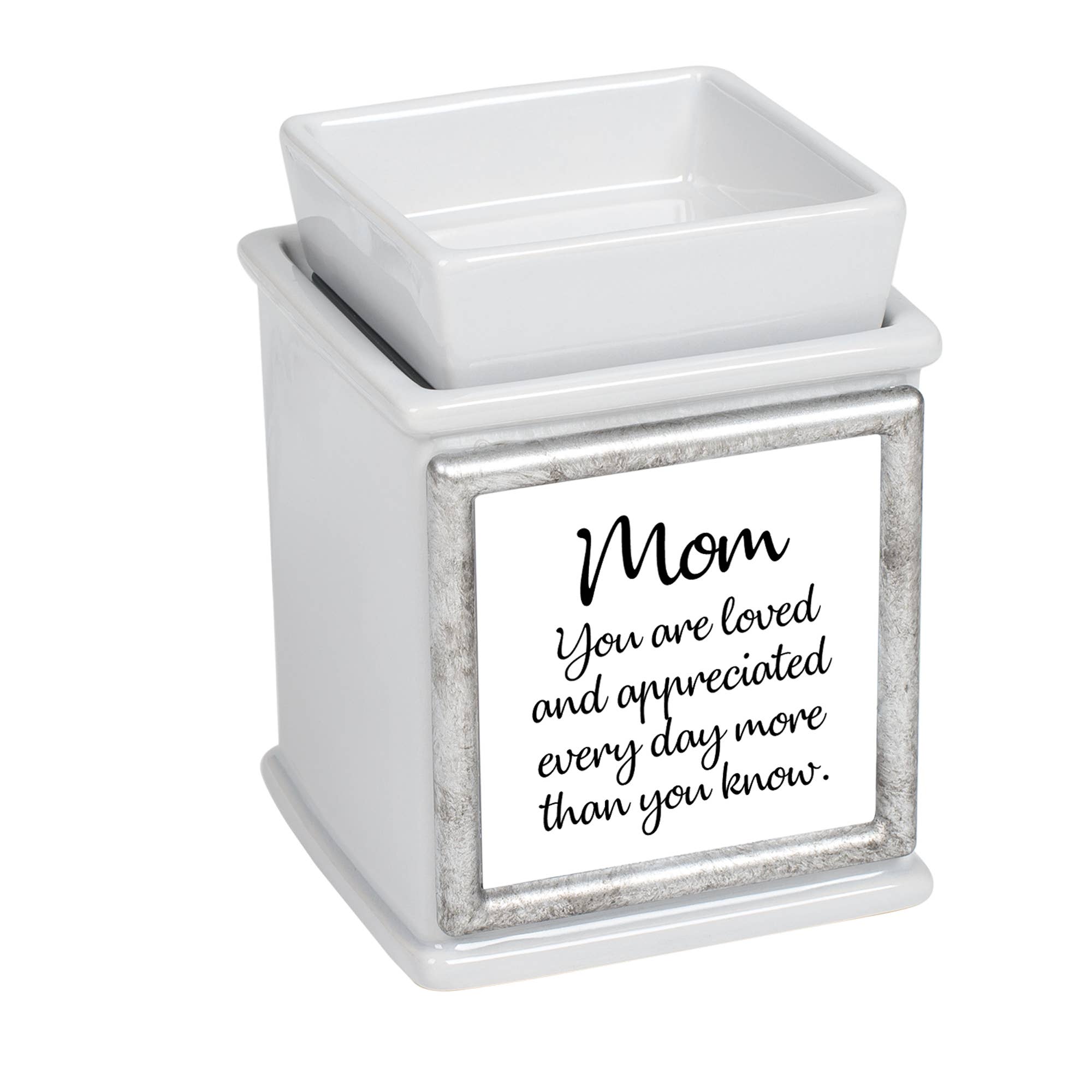 2-in-1 Warmer - Made of ceramic stoneware. Use with wax tarts, wax cubes, scented oils, soy beads, potpurri and more by using the top dish. You can also remove the top dish and place a jar candle directly on the metal warming plate to use as a candle jar warmer; Can be used as a coffee mug warmer. Has a red light on the back of the warmer to let you know when it is on. Designed with a saying to add meaning as a gift or home decor item. 110V electric plug in outlet.