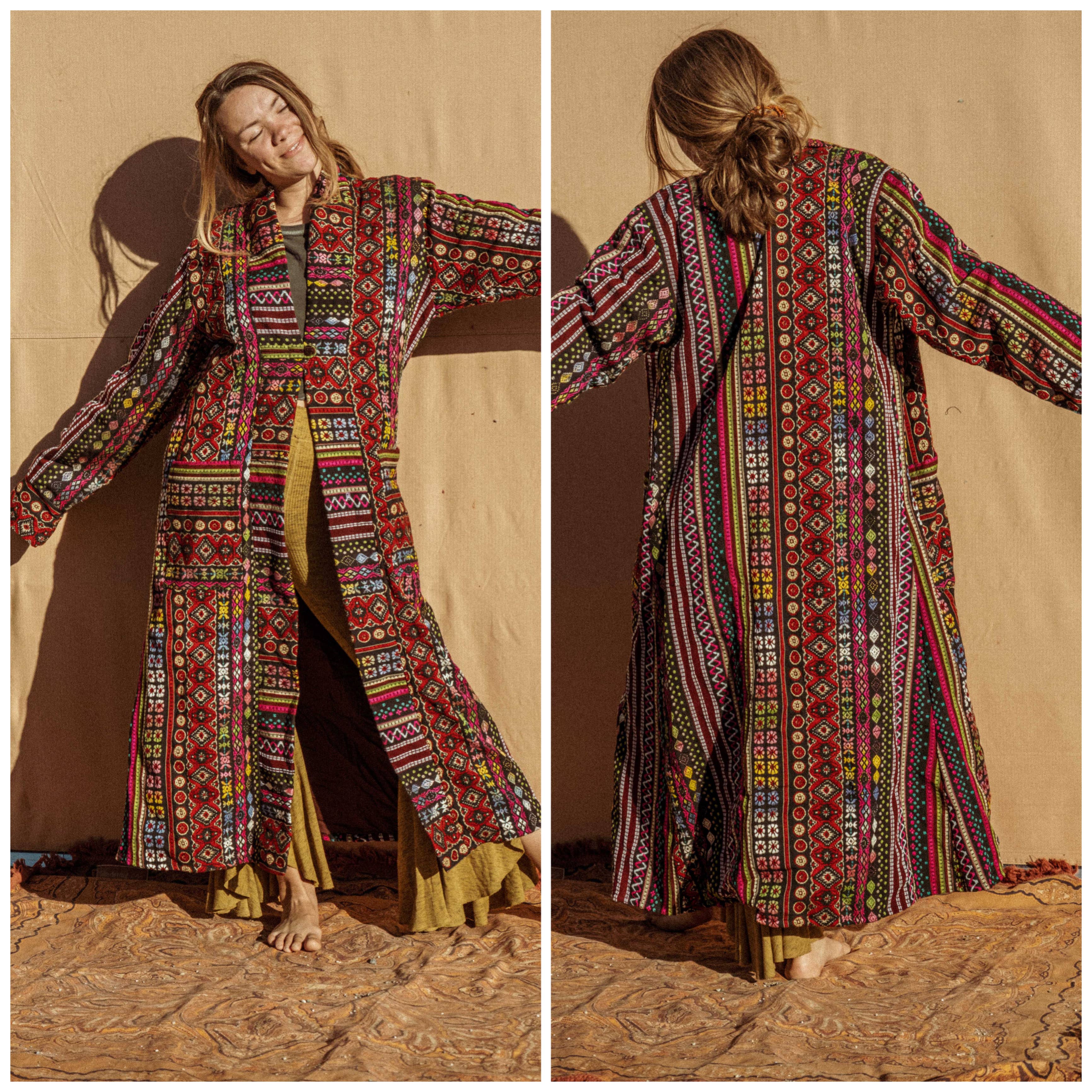 Hippie Boho Patchwork Fleece Lined Jacket, Boho Coat Unisex