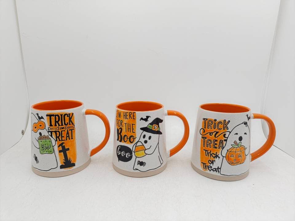 This product is handcrafted and you may notice small air bubbles, pinholes, or uneven paint on its surface. This is normal and to be expected as a result of the intricate ceramic manufacturing process. Each set includes - 2 assorted design mugs (1 dots mug and 1 stripes mug) Specifications Mug Dimension: 4” Height x 5.5” Width x 4” Depth Capacity - 12oz Material Ceramic Care Advice Microwave Safe Dishwasher Safe Hand wash recommended Terramoto Ceramic Halloween Bat Dots and Spider Web Stripes Mugs Set of 2 Grace Teaware