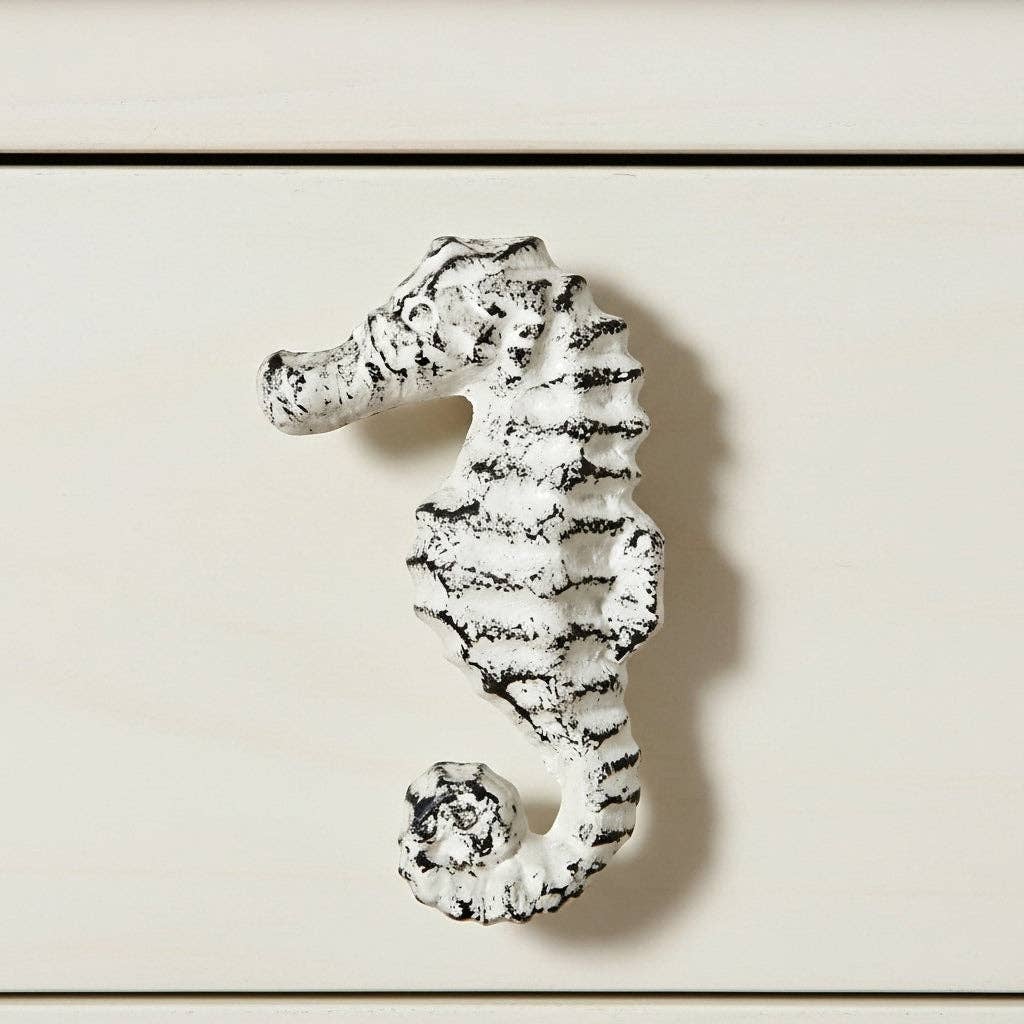 Seahorse drawer pull made of zinc, Patina Copper in Color, Please note the Patina on these are done by hand so each handle will vary.. Approx 2.7" x 1.27". Great for Kitchens, Bathrooms, Furniture or even a Trailer remodel. See #4029, 4026 and 4027 for matching Knobs. Screw Included.
