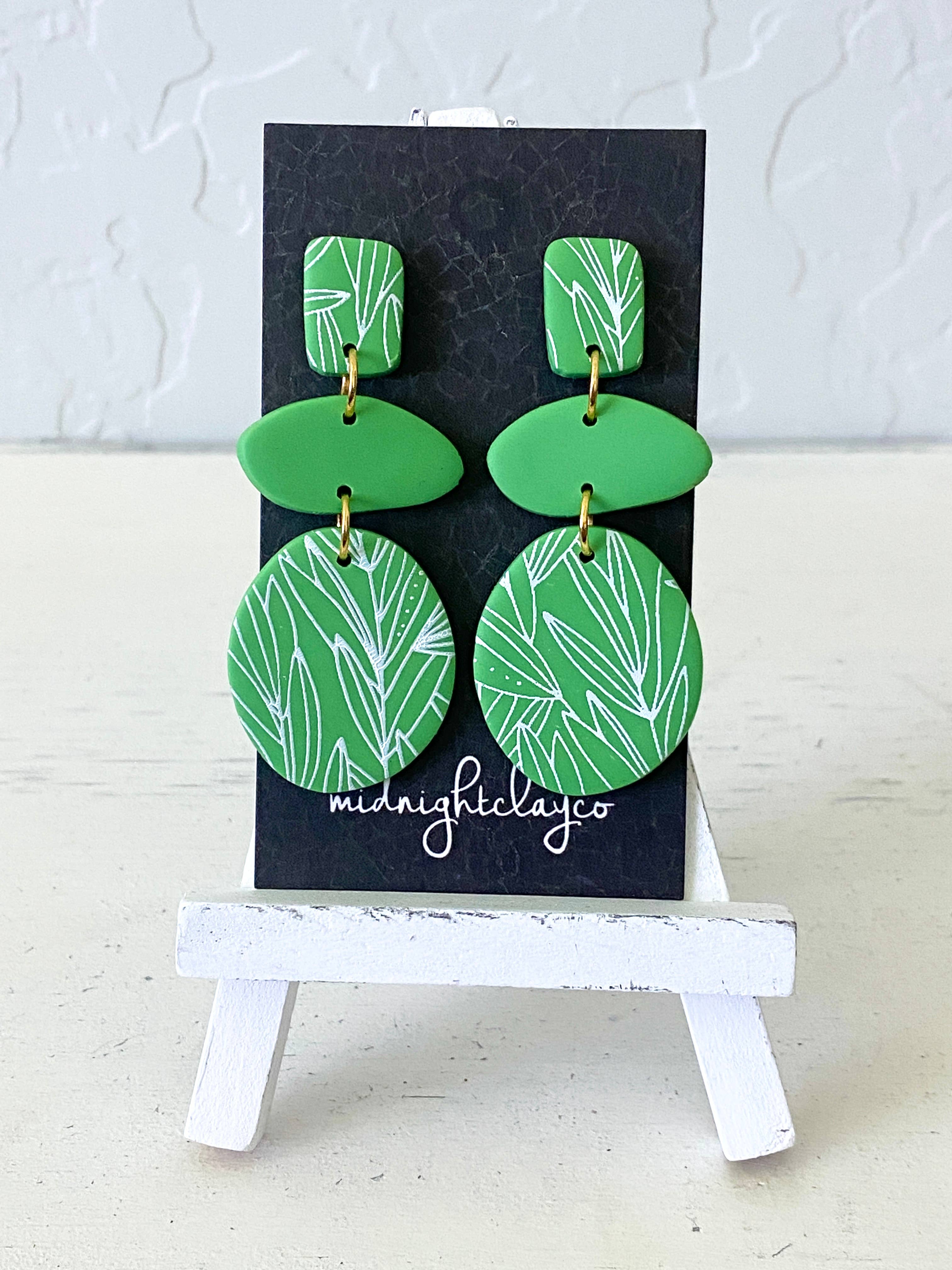 Check out our fun spring green styled hexy with a fun paisley pattern painted on the earring.
