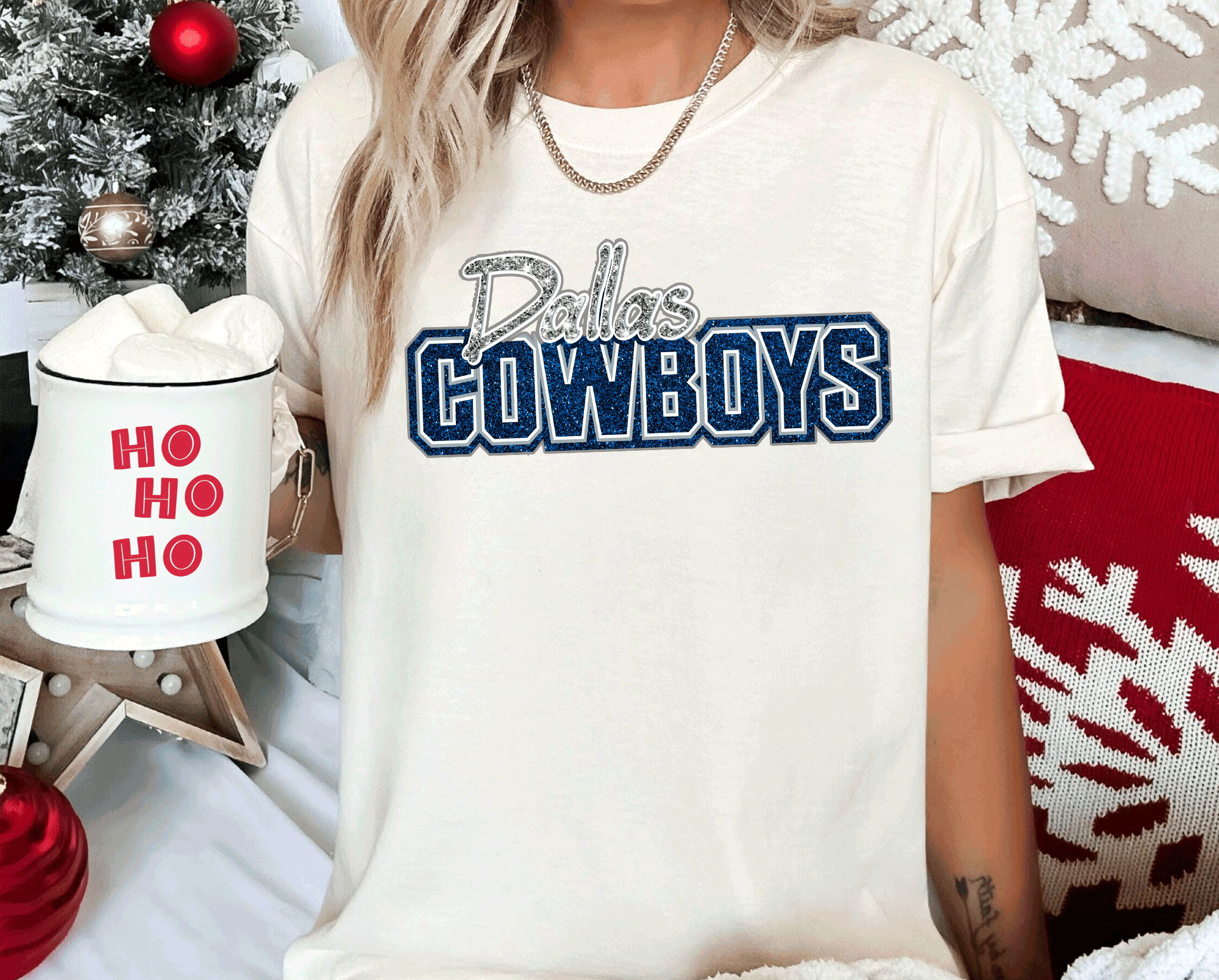 Cowboys Football Spirit Wear Faux Glitter America Team
