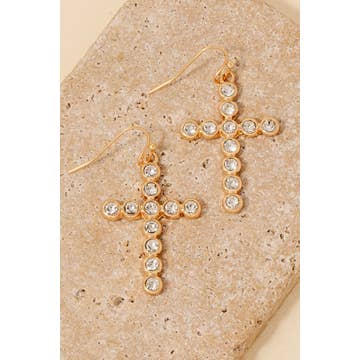 - Earrings with Rhinestone Embellishments Connected to Fish Hook Style Clasps with Cross Shaped Design - Perfect for Daily use or special occasion. - Zinc Alloy - Fish Hook - Lead & Nickel Compliance or Free.