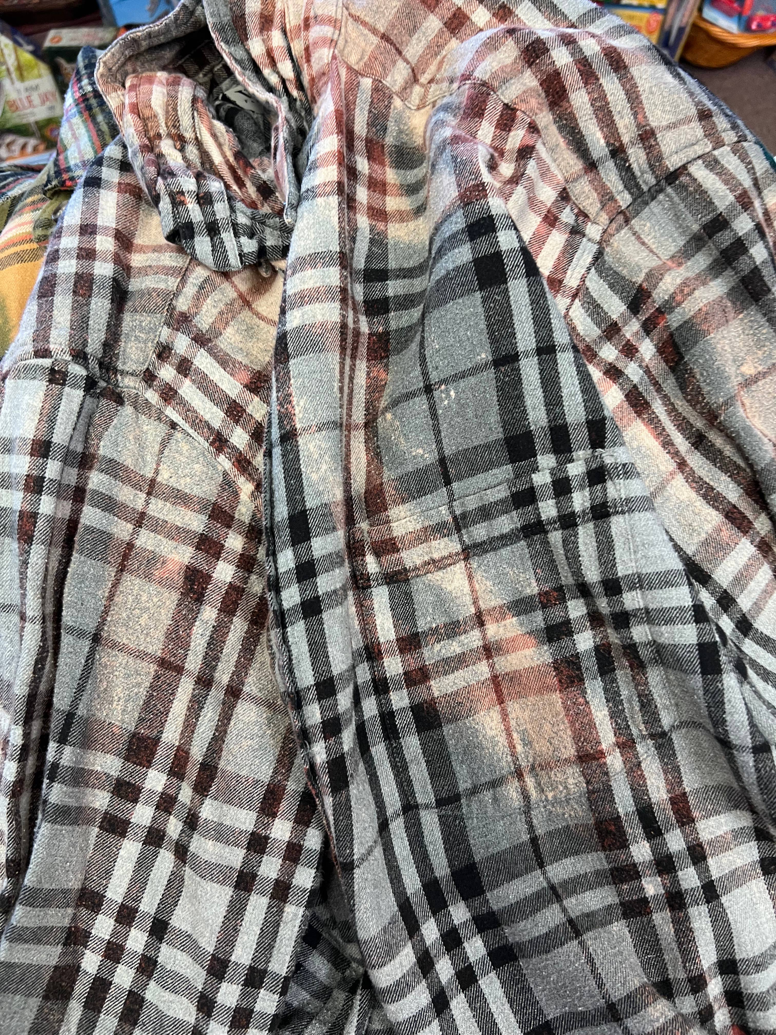 Uniquely upcycled Flannels! We curate the best quality pre-loved and vintage items by hand for our collection. Each item is creatively designed and hand distressed by us using our distinct techniques. They are all one of a kind flannels so for each size ordered you would receive a variety of colors! We offer a variety of sizes and can accommodate a variety of needs.