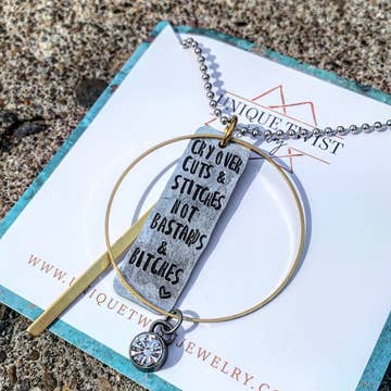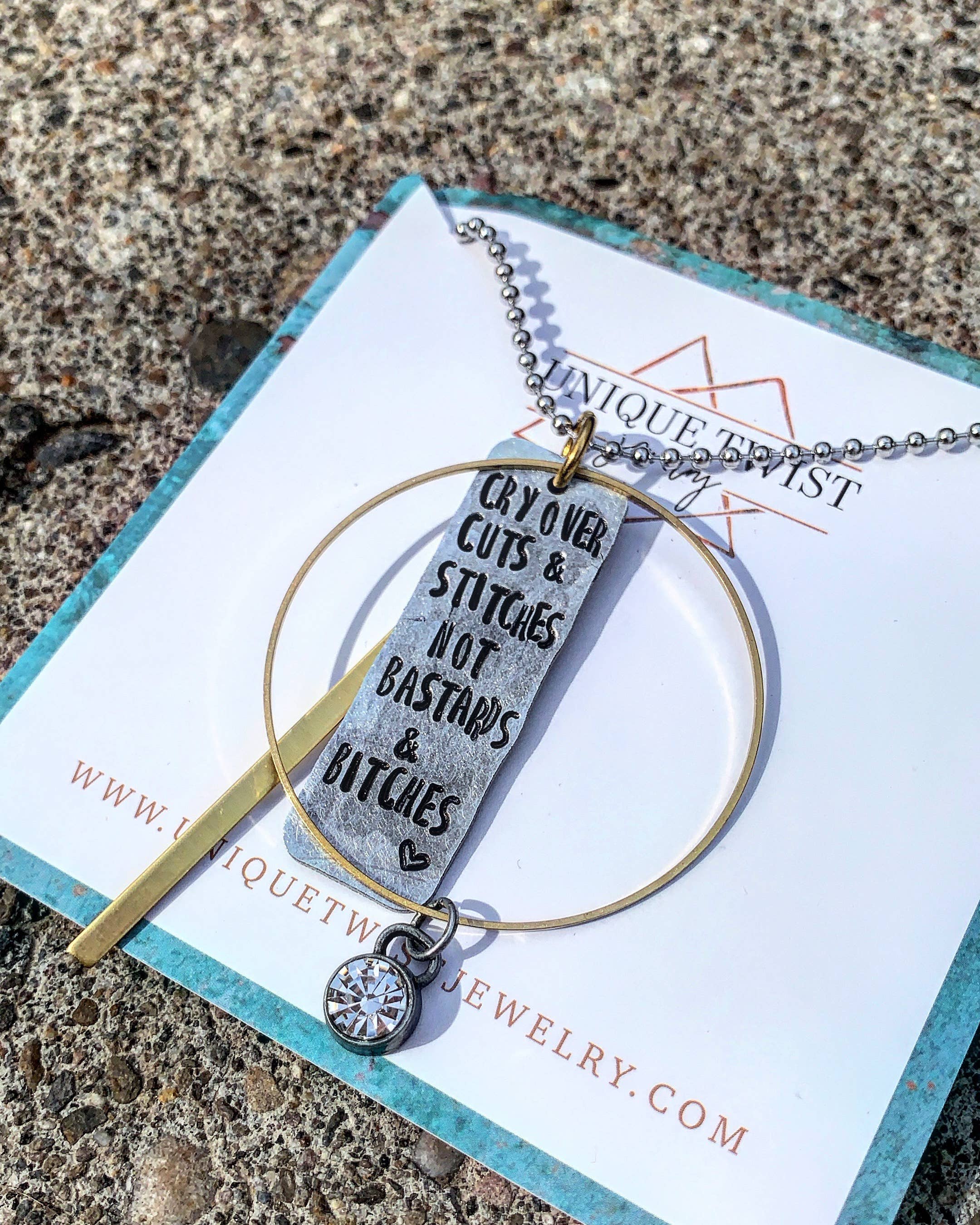 “Just Nappin” Sloth necklace Hand stamped fun animal themed necklace Each letter and design image is stamped by hand, one strike at a time, by me. Because of this, there will be some variations in the spacing, depth of letters and placement. This is not to be considered a defect but to a part of the uniqueness of each piece. Unless otherwise stated, I cannot stamp on the back of any piece. It will show through to the other side, ruining any stamping on the front Thanks so much for checking out my shop! All items in my shop are made and put together by me. I do quality check all of my products but they are handmade so sometimes slight differences are to be expected. I appreciate you shopping handmade :) Please check out the rest of my handmade items here Check me out on Facebook!