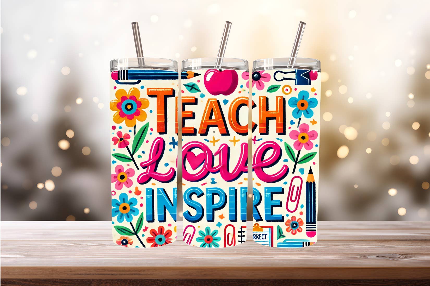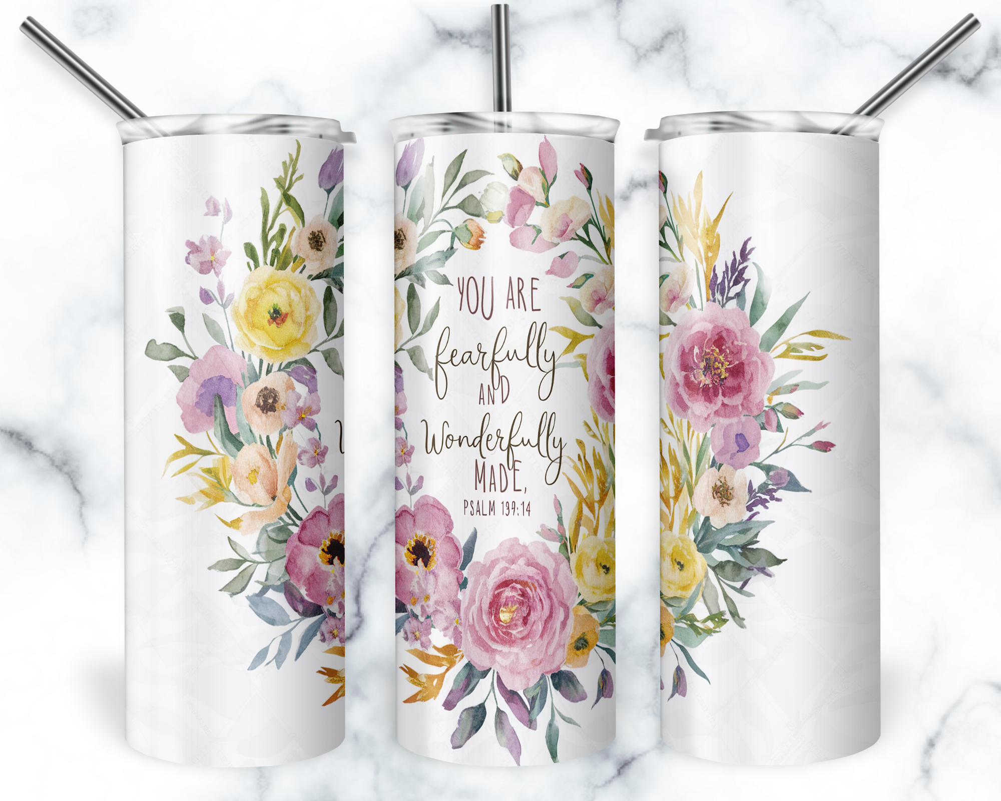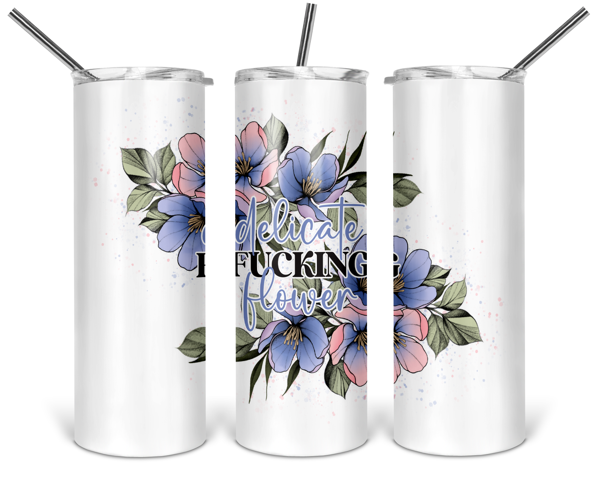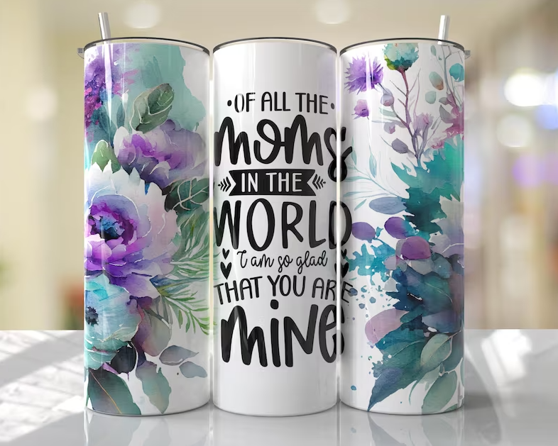 These 20 oz. Skinny Tumblers are made with double wall stainless steel and a white powder coating. Designs are printed on using a sublimation process. They are perfect for hot or cold drinks and fit most cup holders. This listing comes with one tumbler, one clear plastic push on lid, one plastic straw. Colors may vary from monitor to monitor. The image shows all sides of the tumbler for illustration purposes.