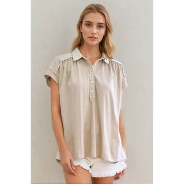 Natural P.CILL 100% Linen Cropped Button Up Shirt for wholesale on Faire4