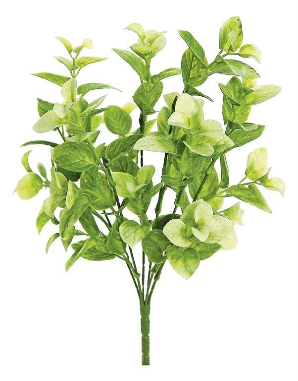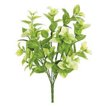 The Evergreen English Boxwood Half Sphere brings a fresh touch to springtime or anytime decor. The accent piece features green plastic branches adorned with small green leaves. Meant to rest on a surface or in a bowl, basket, or pot, the half sphere features a flat bottom. Each leaf has a detailed, textured finish and a dimensional green color for a more realistic look. Measures 6” high by 9” in diameter.