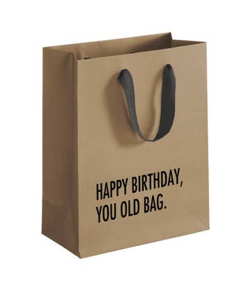 Funny Birthday Gift Bags for Friends, Coworkers & More. Level up your birthday gifting with a bag that has a double entendre for our go getters out there. Our “Another Year, Another Bag” is cheeky, fun, and perfect for wrapping stationery, self-care gifts, or whatever makes someone's day a little brighter. Ideal for the birthday boss who appreciates a good laugh and good design. Product Details: * Scuff-Resistant Matte Lamination * Premium Heavyweight Paper Stock * Braided Rope Handle with Metal Eyelets * Size: 9.6”L x 4.5”W x 13”D Need a gift to throw in the bag? Grab our cute birthday party gift bag and pair with our notebooks, mugs, and out the icing on the cake with a thoughtful birthday card!