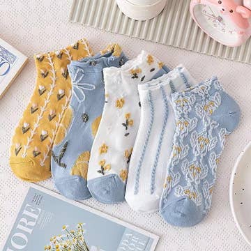 SKU: LHWFM Made in China Aesthetic: Bohemian and Romantic / whimsical Care Instructions: Machine wash Embellishment: Embroidered Fabric: 80% Cotton | 15% Nylon | 5% Spandex Occasion: Working Out Pattern: Floral Sock Length: Crew Sock Style: Grip Weight: 82.21 g (2.9 oz) UPC: 850043886105